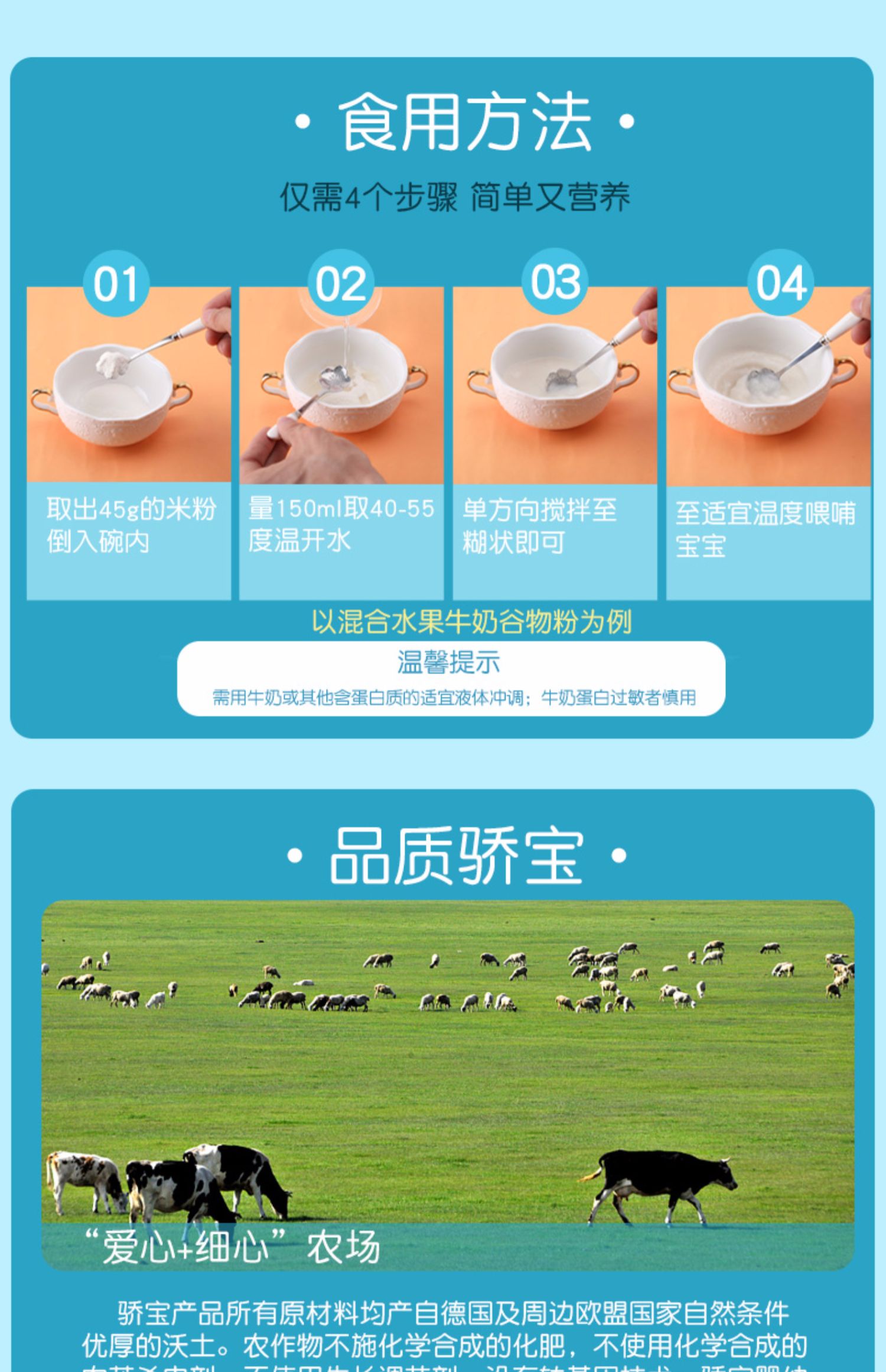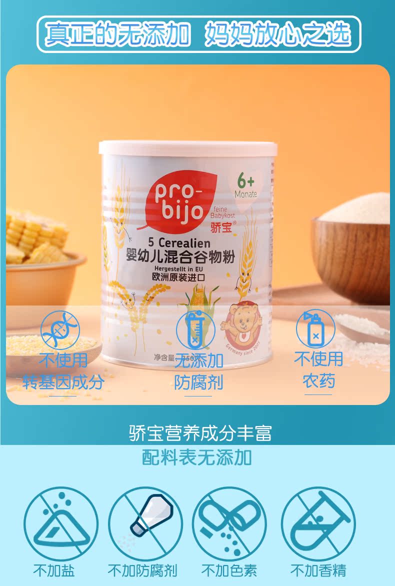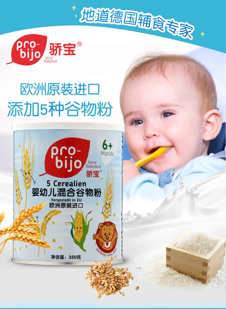 【骄宝】欧洲原装进口,正品保证,添加5种谷物粉,利于宝宝肠胃消化,补充钙铁锌硒等多种维生素,让宝宝营养均衡,细腻可口,妈妈放心的好食材~【赠运费险】