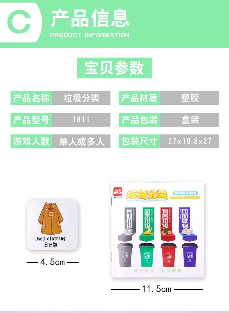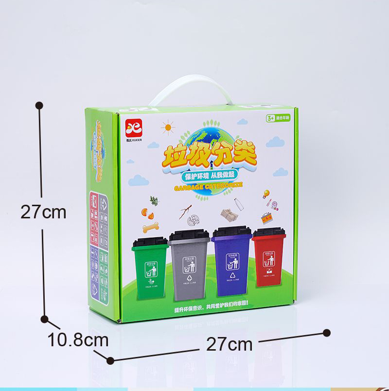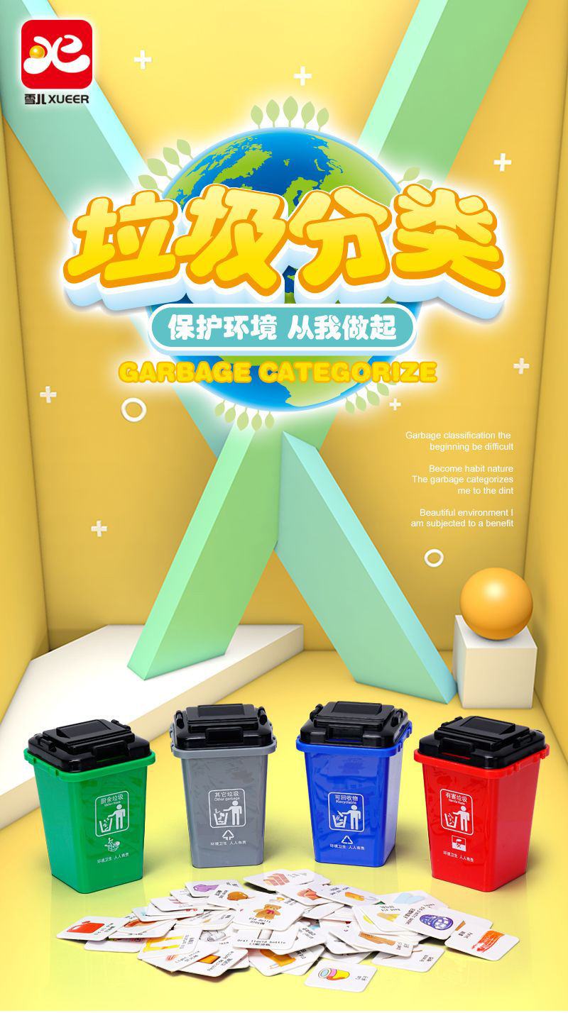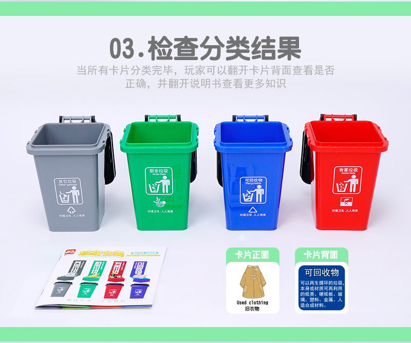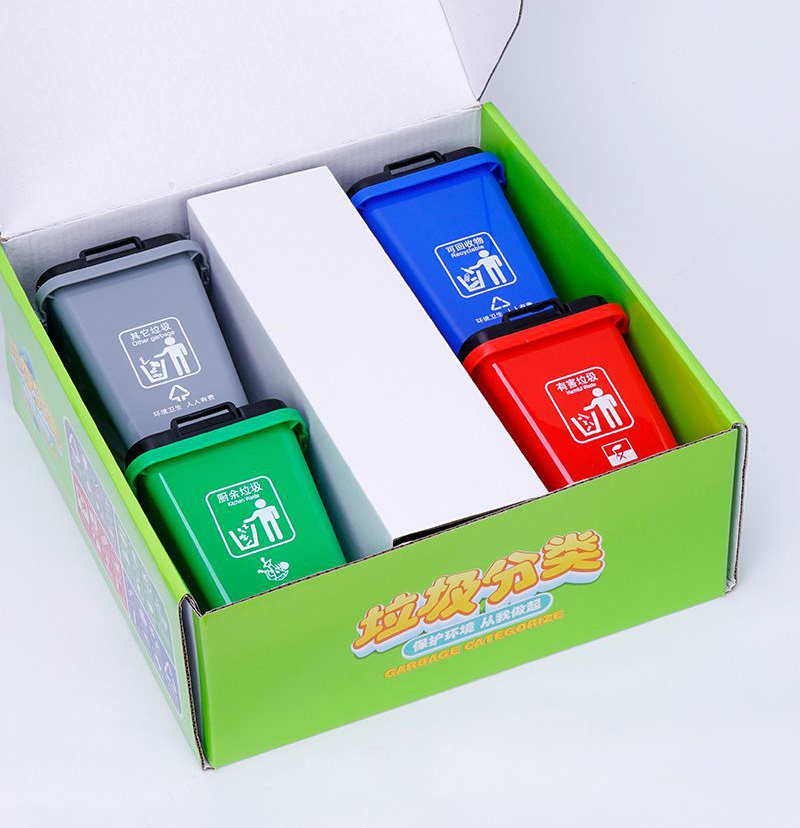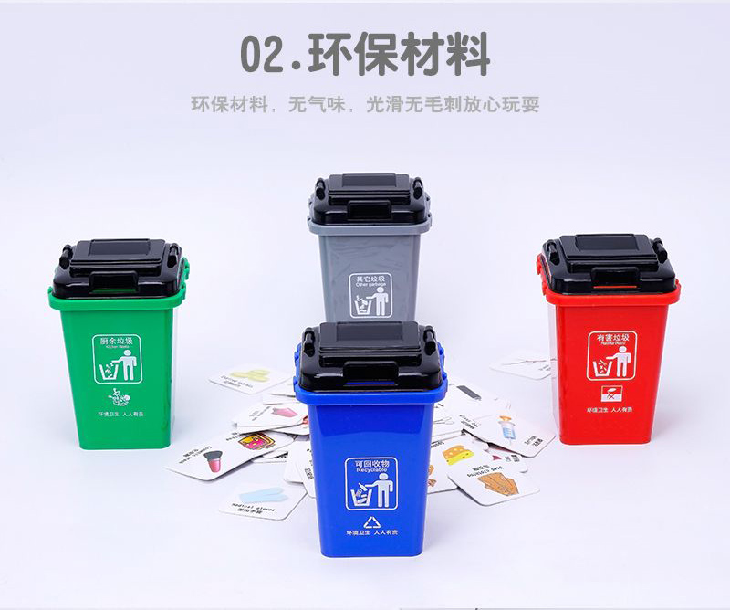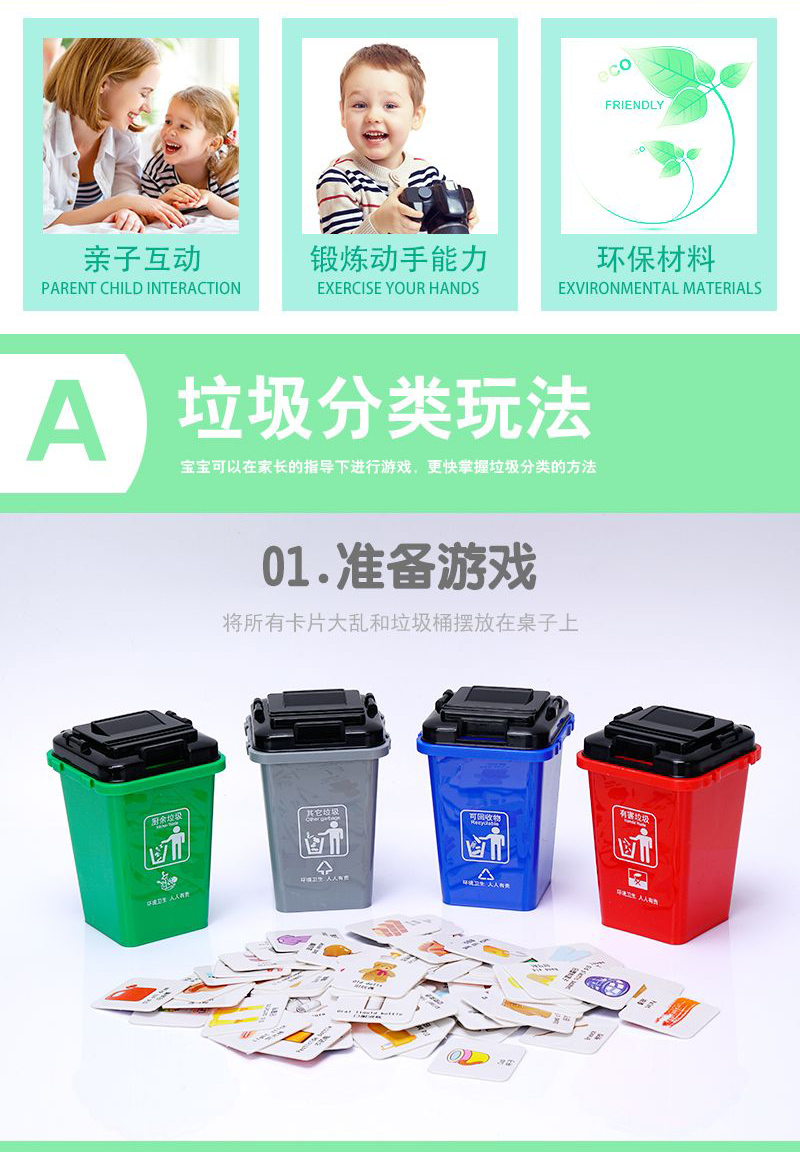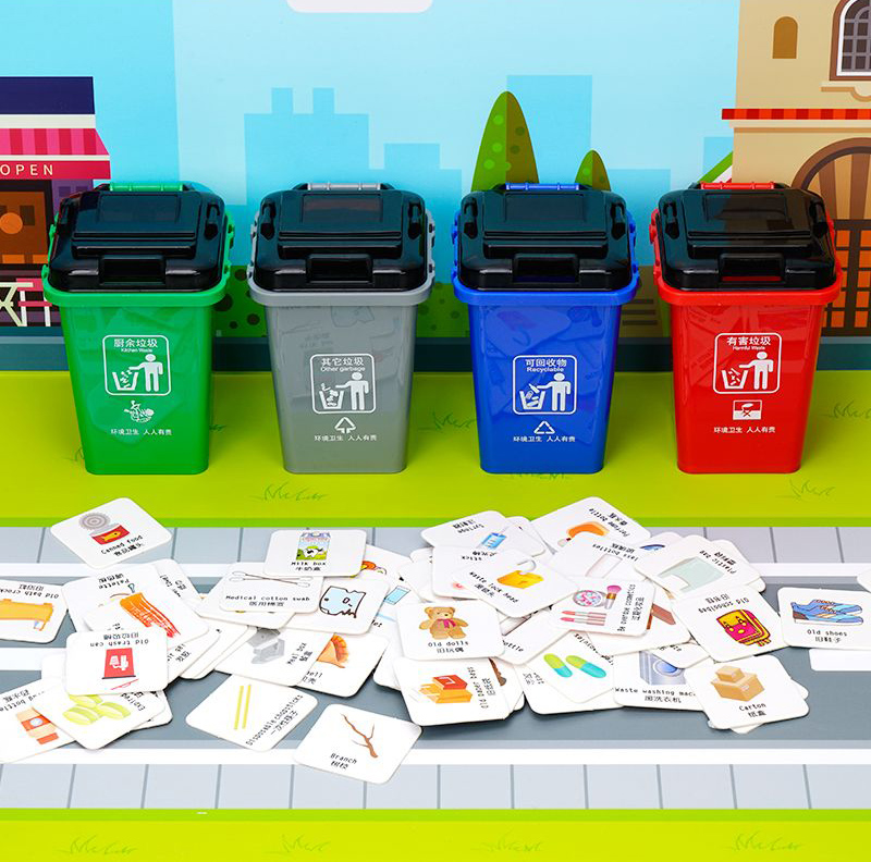 【4桶+100张卡片+说明书】跑男极限挑战同款垃圾分类道具,3C环保标志认证,中英文带图卡片环保无异味,提高孩子的认知力和逻辑思维,养成环保意识!礼盒惊爆价12.9!快抢~~~【赠运费险】