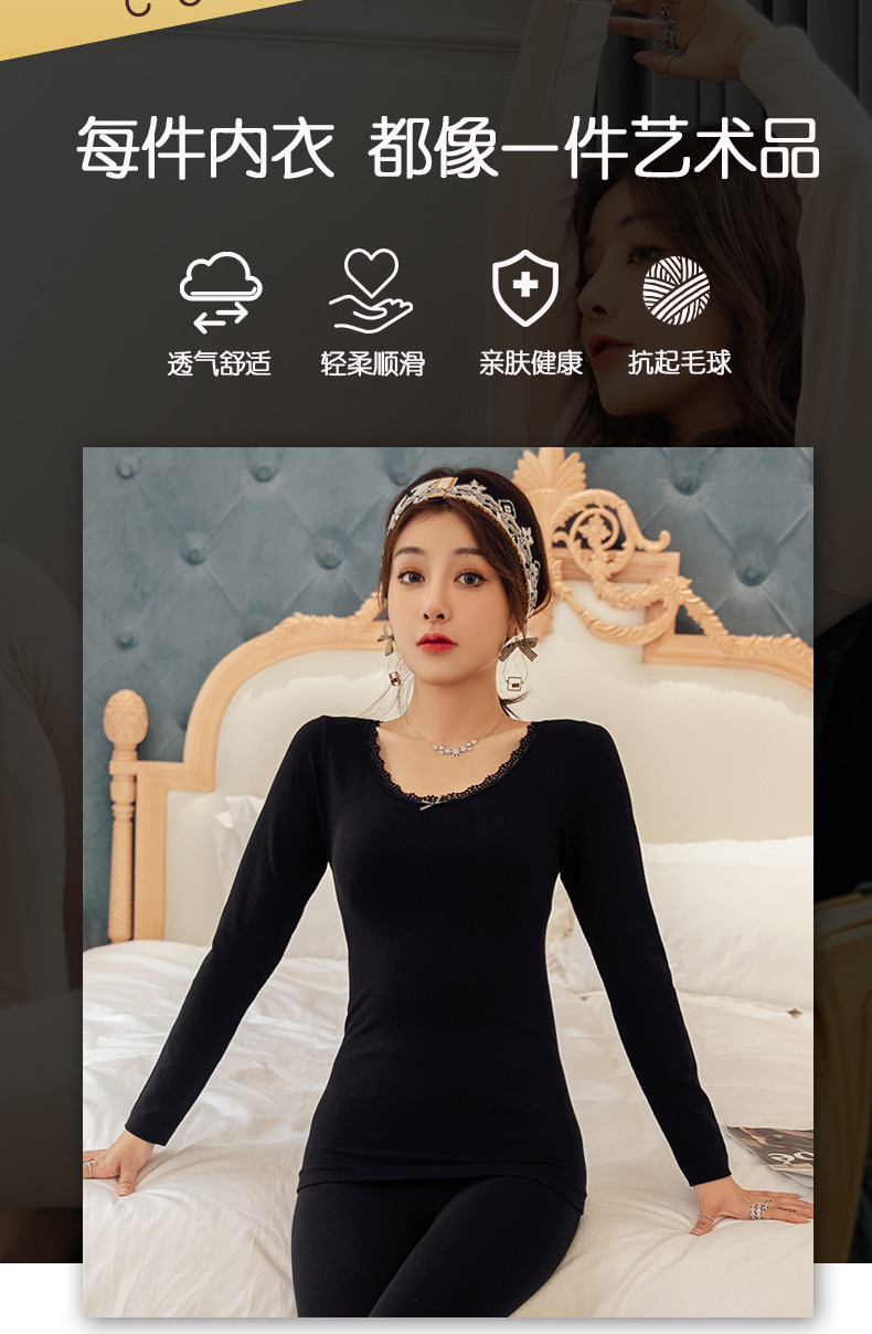 衣服+裤子,更懂亚洲女性身材的设计,颜值与质感并存,品质非凡,舒适高弹,性感打底,蕾丝大圆领,多款选择!【赠运费险】