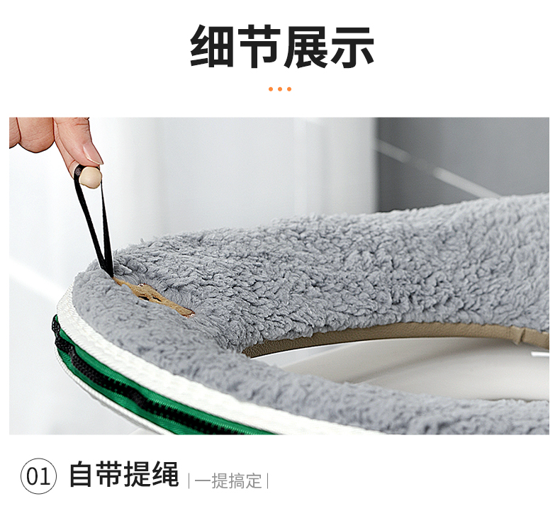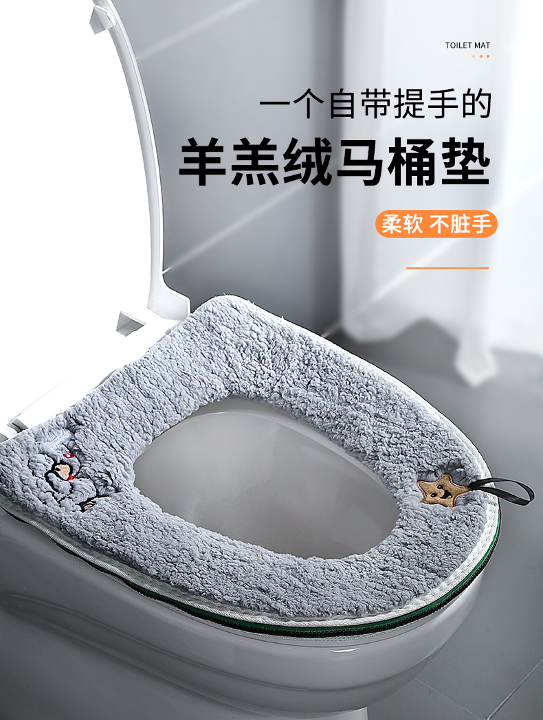 魔术贴粘扣式、加厚优质羊羔绒,背面PU防水材质、自带提手干净卫生!上厕所不冻PP,给你暖心呵护~