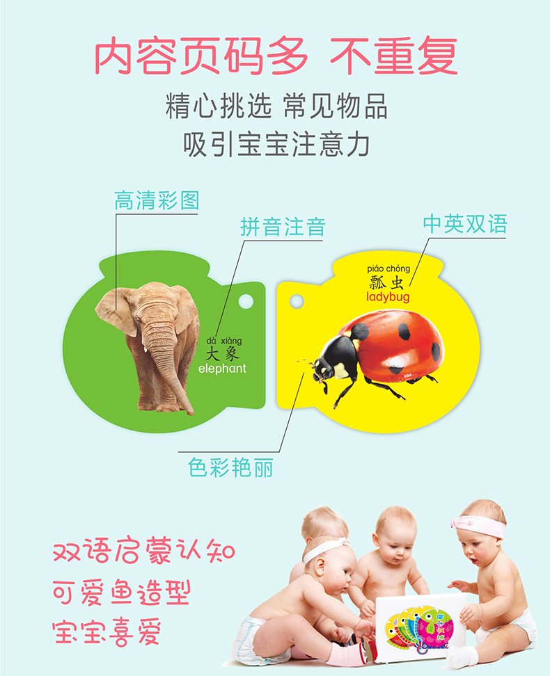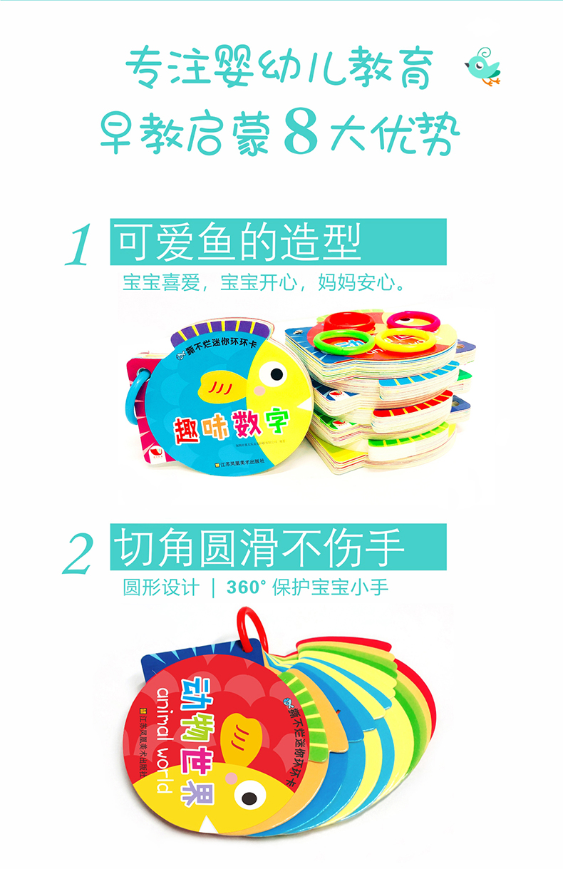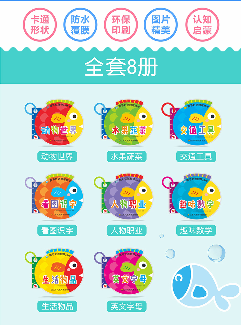 【赠送收纳环】全套8册,192页,202个知识点,高清彩图拼音注音,中英双语启蒙认知,可爱鱼造型宝宝超喜爱~【赠运费险】
