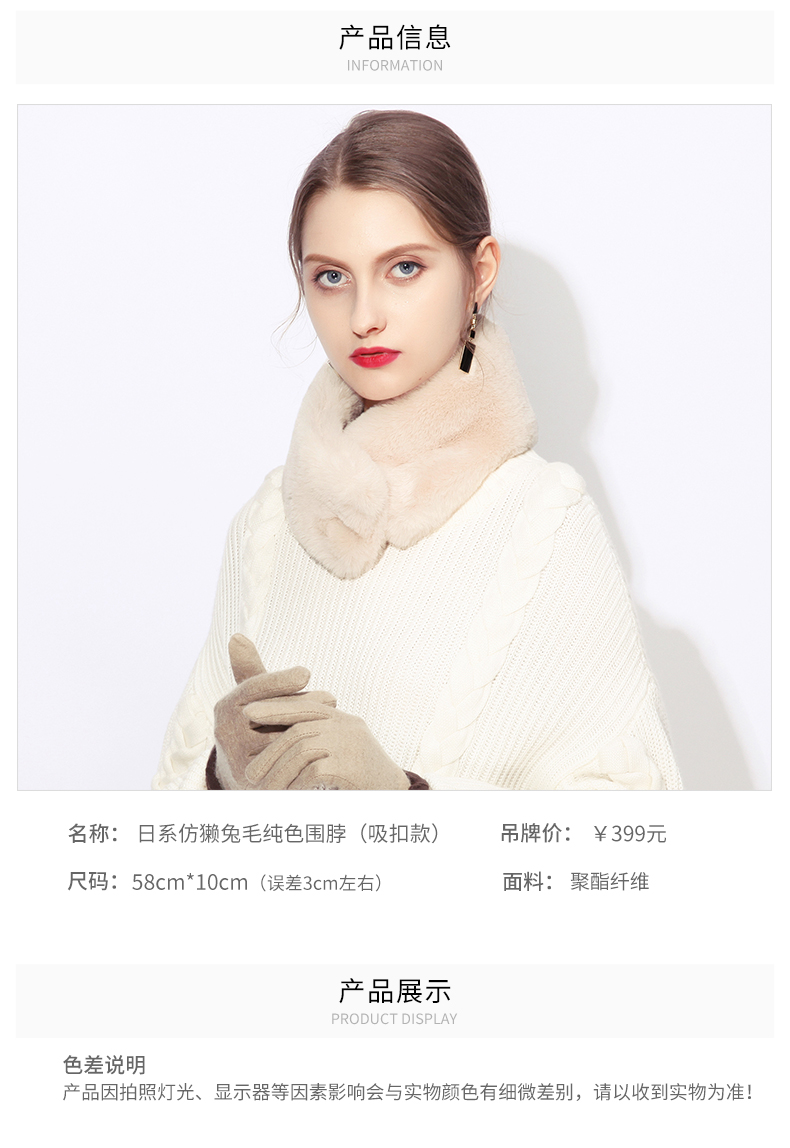 【上海故事】大牌,采用高档皮草材质,手工缝合,仿獭兔毛皮领子加厚保暖百搭脖套,不钻风,舒适超柔软,纯色大气,简约时尚,多色可选,倍增仙女气,冬天马上到了赶快备一款吧~