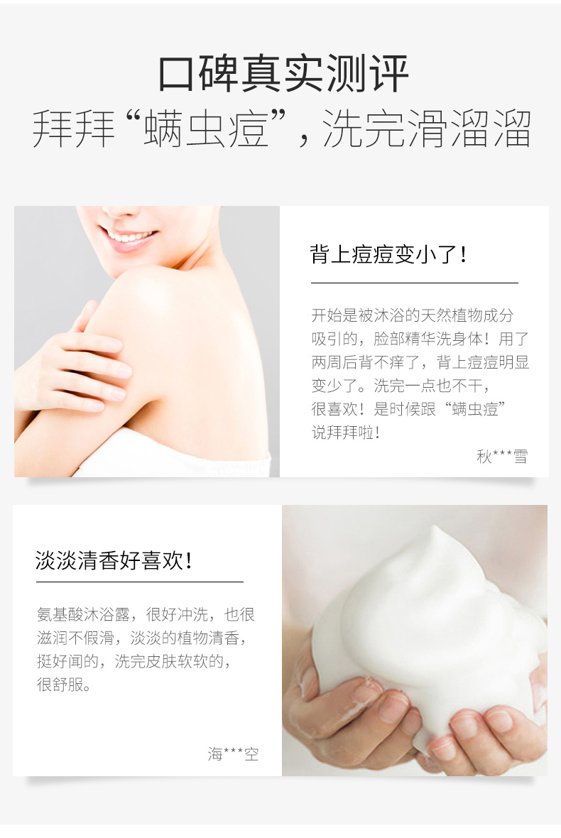 螨虫滋生?皮肤暗黄痘印多?推荐广藿香沐浴露!蕴含广藿香等4重植物精华,深层滋养肌肤,有效祛痘除螨,让肌肤白嫩又净滑~