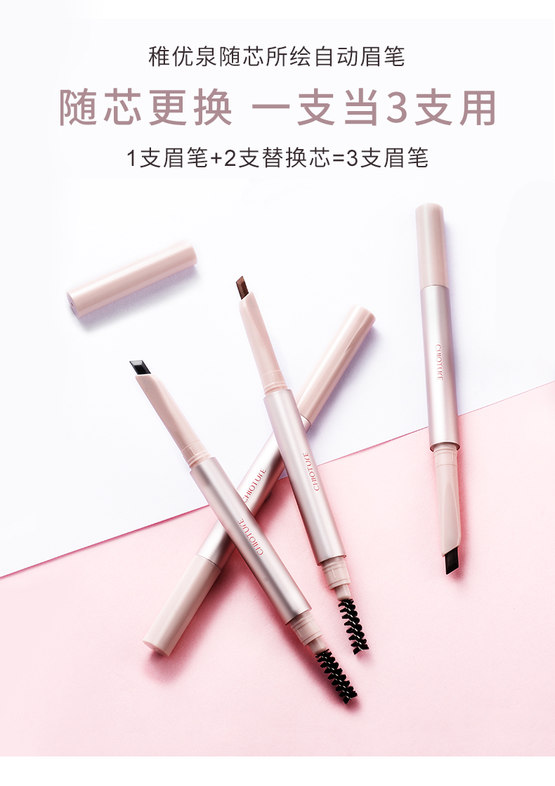 稚优泉随芯所绘自动眉笔,自然晕染,柔和显色,打造自然质感,六色可选,随心搭配,细芯够细,眉尾才细致,女神必备!速抢~