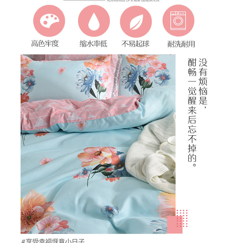 加厚保暖水晶绒四件套,解决冬季睡眠问题,触感柔软,对皮肤无任何刺激。隐藏式拉链方便拆洗,不易划伤皮肤,无异物感。贴心被角带设计牢牢固定被芯,给您优质睡眠