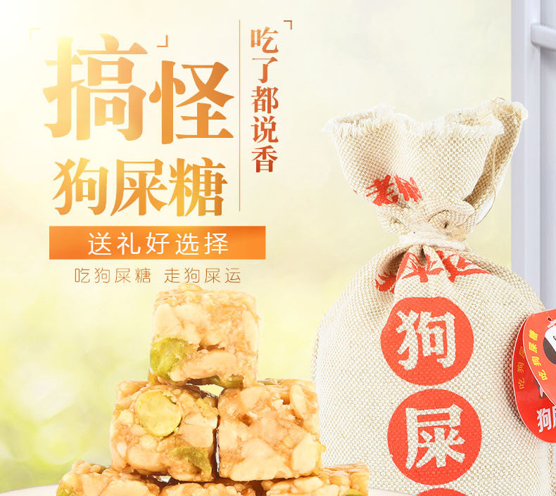 狗屎糖,零食中的一朵奇葩~青豆花生果仁喷香,甜蜜酥脆不齁不腻,每咬一口都让我感恩上帝!好吃到原地爆炸!大人小孩都爱的味道~