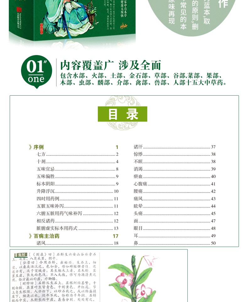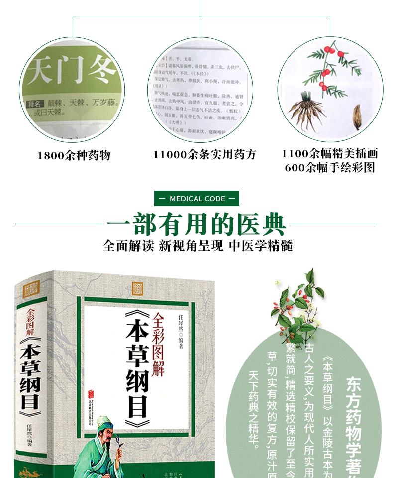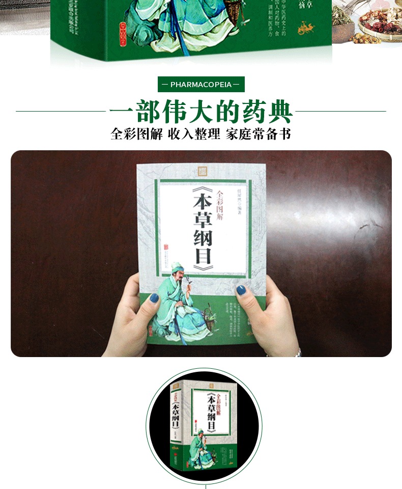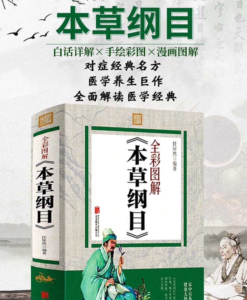 一部东方药物学巨著,彩图完整版《本草纲目》,李时珍著,全彩印刷,详解中草药作用,古中医养生大全。DI一次系统地阐述了养生理论与方法,不仅讲了怎样治病,还讲中老年爸妈必备养生宝典。家庭必备~