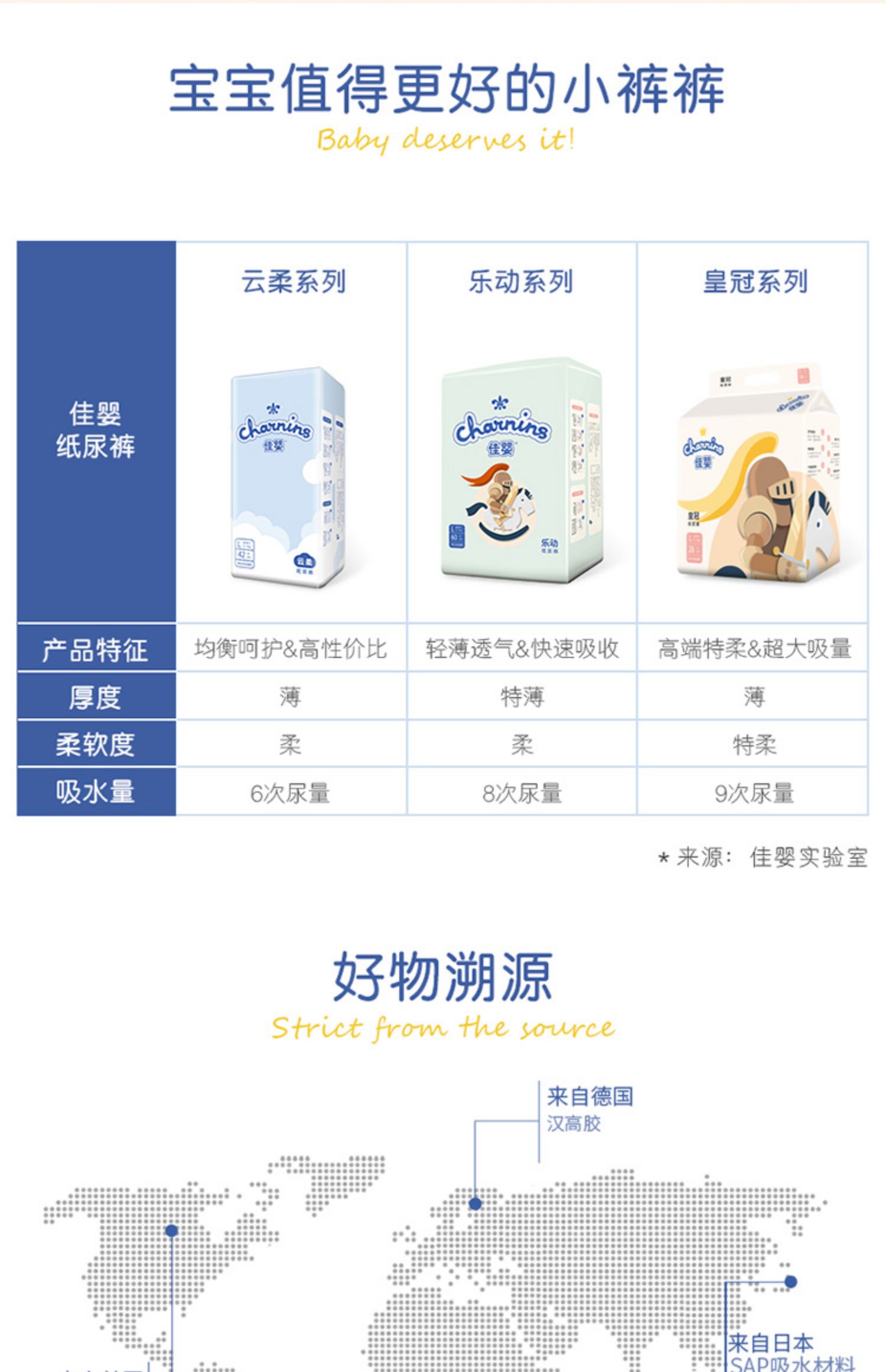 佳婴官方新生宝宝尿不湿,贴肤舒适,超薄无感,吸收强劲,干爽透气,轻柔亲肤,贴心设计多一点,妈妈烦恼少一点!