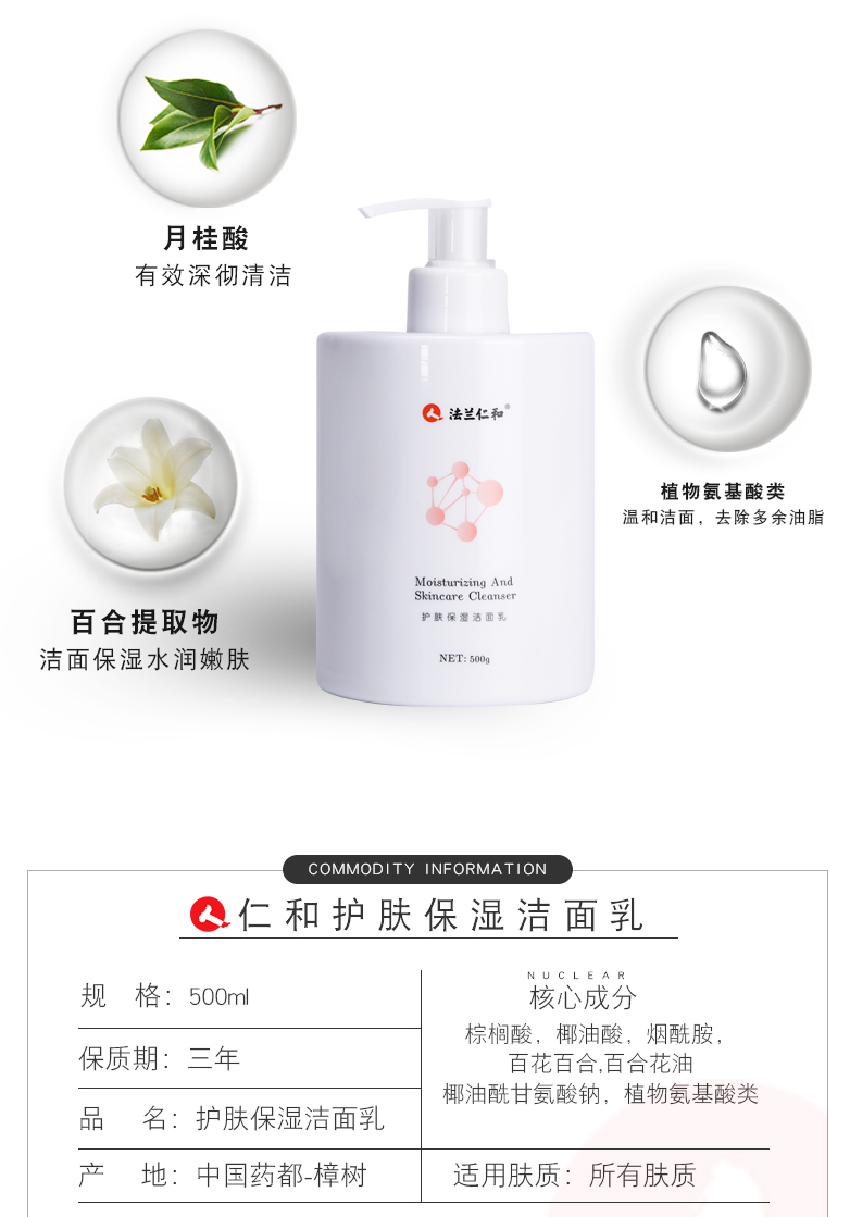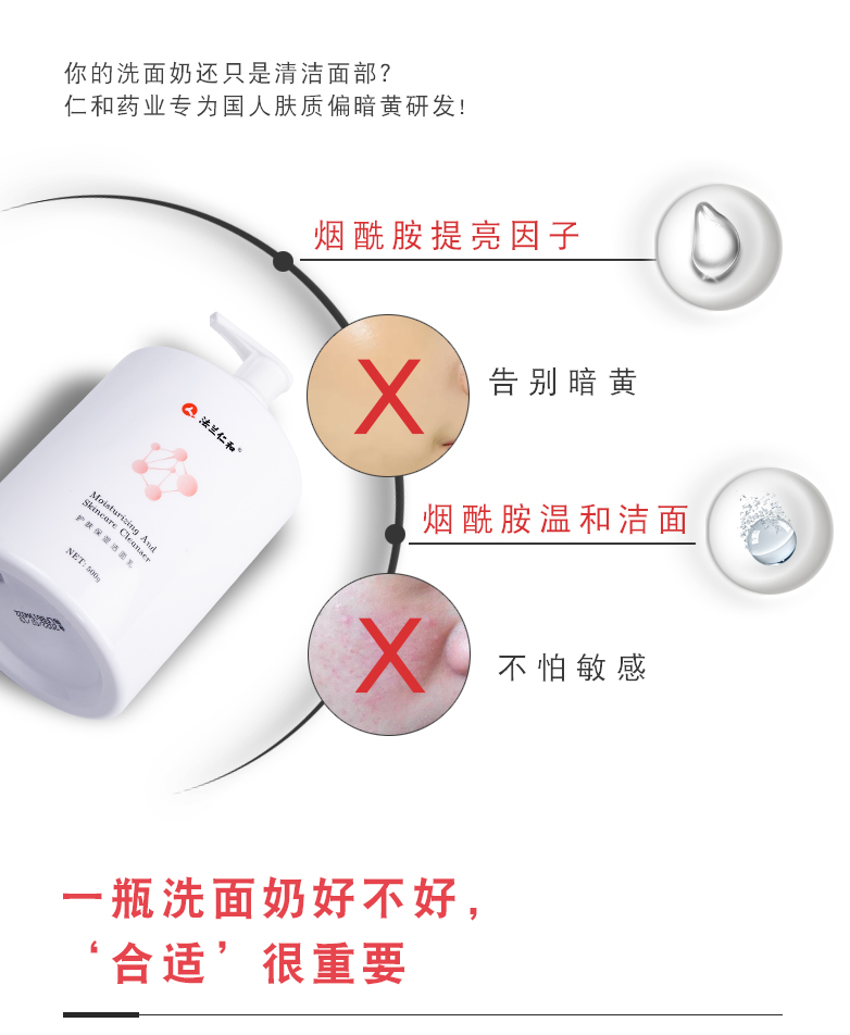 【温和补水,男女款,大瓶500g装!】仁和药业旗官方直售,氨基酸泡沫洁面,超温和不刺激,泡沫丰富绵密,洗完不紧绷,深层洁净,呵护肌肤,性价比超nice,精致女孩男孩必选!【赠运费险】