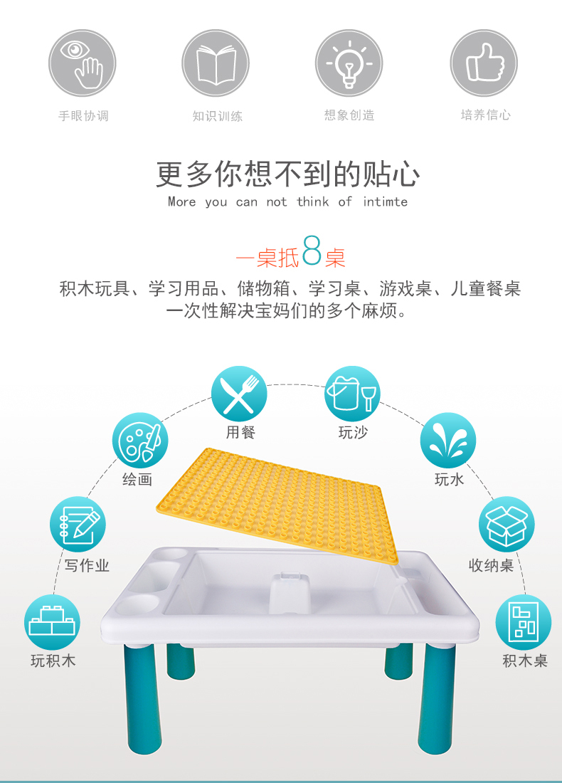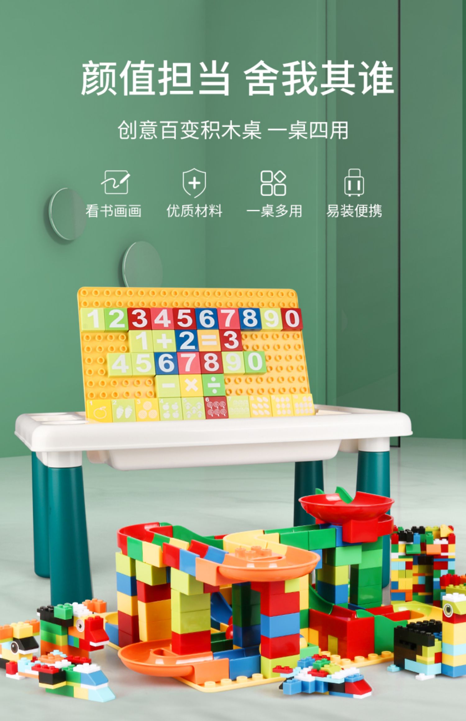 送35颗大颗粒平面积木+大颗粒积木面板】【赠运费险】孩子益智玩耍小天地~儿童玩具积木桌!不仅可以让孩子和小伙伴一起玩游戏,积木等,还可以当学习,画画的桌子!活动仅24.8!宝妈速抢!