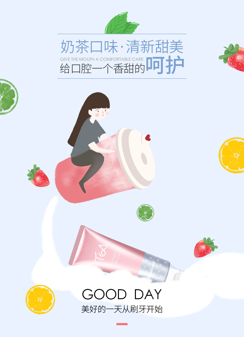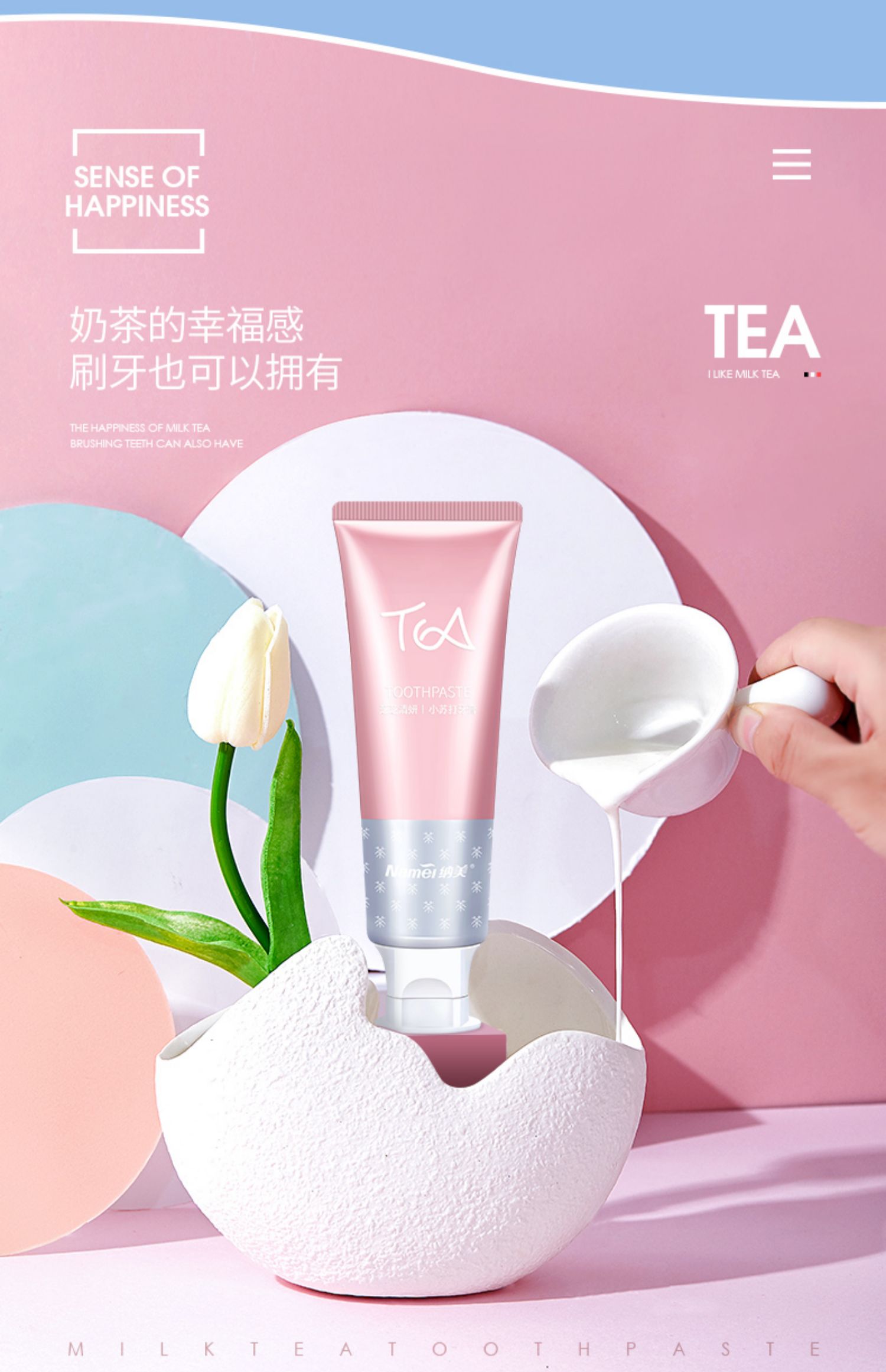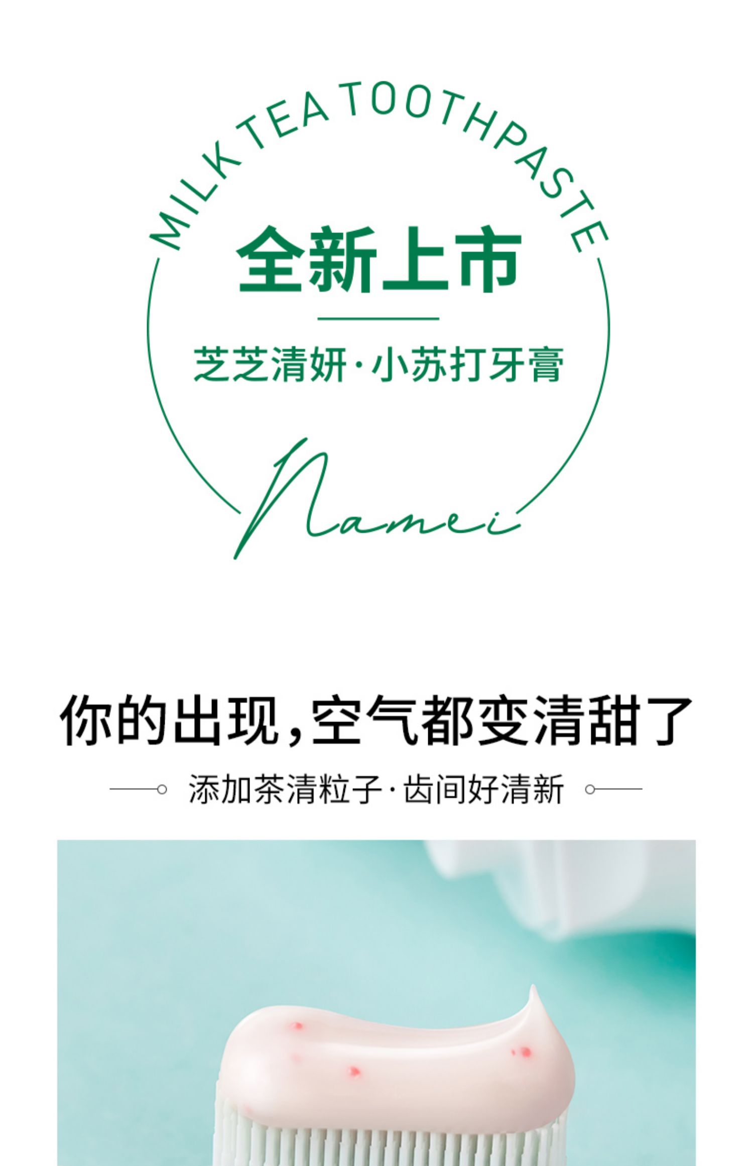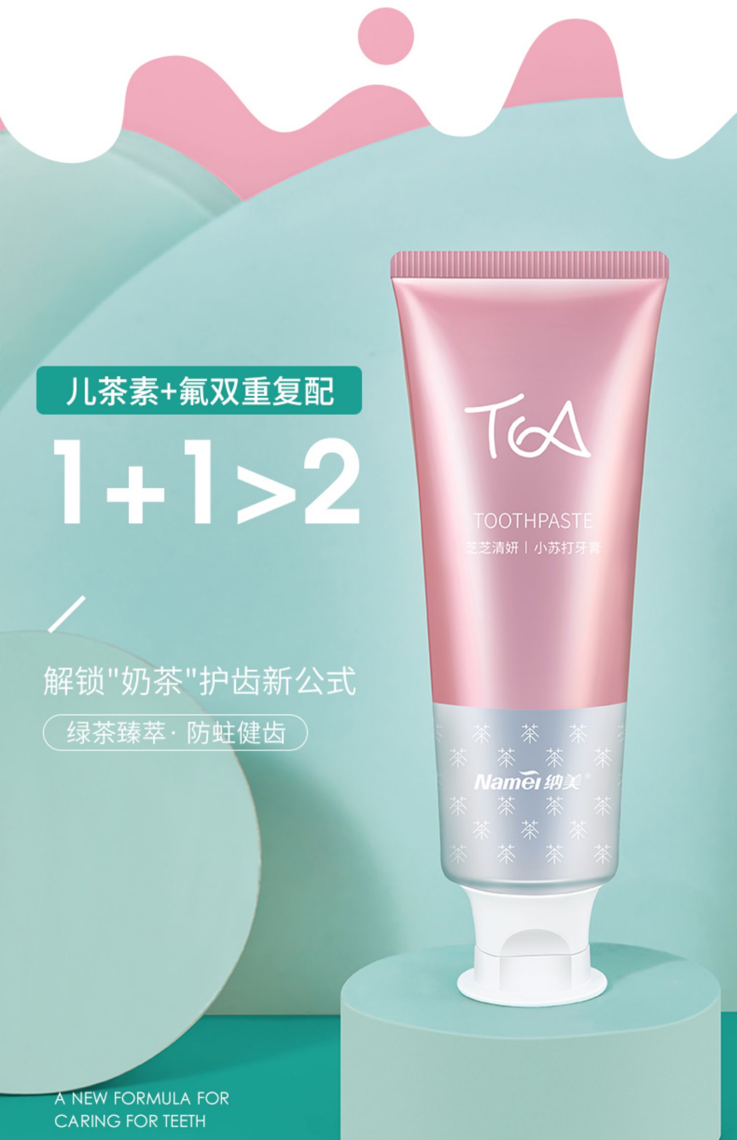 【纳美】奶茶牙膏纳美首发,蕴含氨基酸成分,绵密泡沫,防蛀固齿,细微颗粒,自然洁白。刷完牙齿就像喝完奶茶一样!