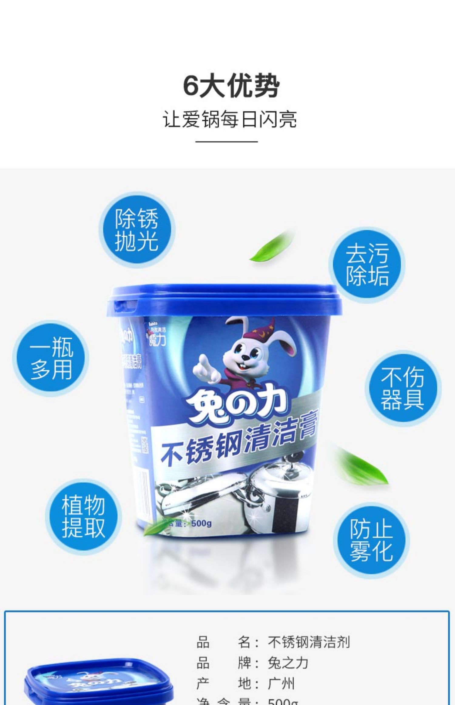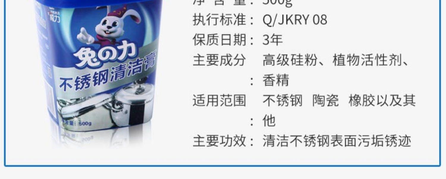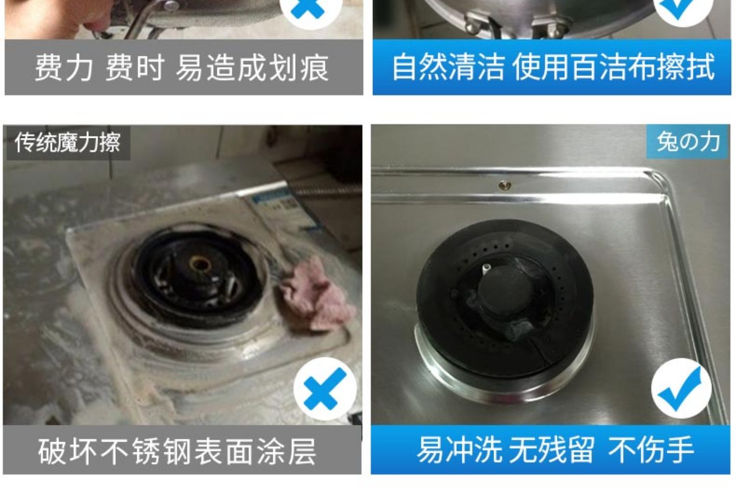 【送冰箱除味剂+百洁布】兔力不锈钢清洁膏,强力去除厨房油污,除锈蚀,除烧黑,除焦渍,除锅底黑垢,立竿见影,让不锈钢重换新生,光亮如新,告别划痕。安全环保,不伤手【买一发二,买二发六