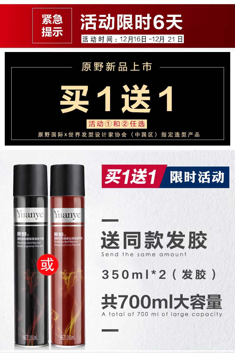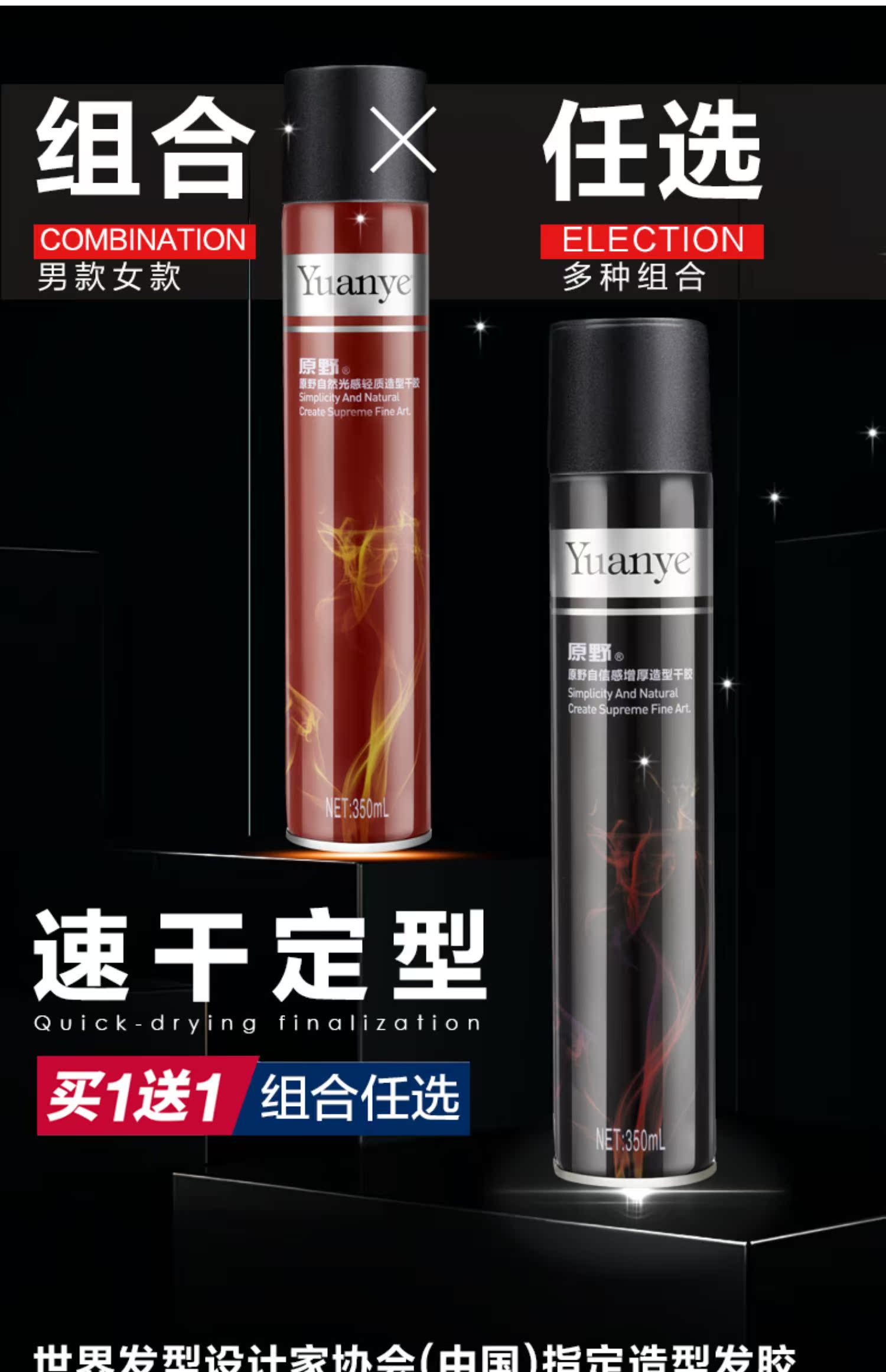 【买1送2】原野发胶喷雾,品质保障,含保湿分子,强力持久定型,清爽不黏腻,顺滑自然不起白屑,清香怡人不刺鼻,男神女神必备款,业界发型师的挚爱,轻松打造迷人发型【赠运费险】