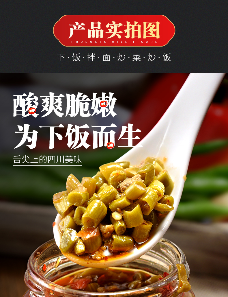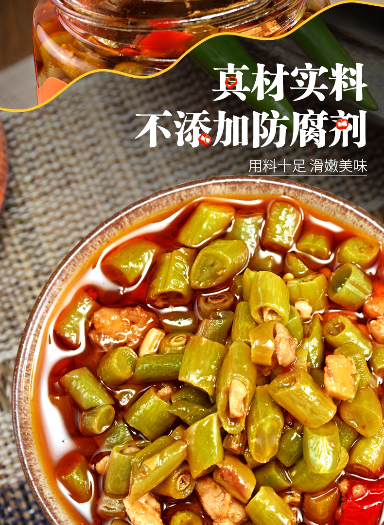 【第二件0元拍两件哦】选用上等土坛豇豆,搭配泡红椒爆炒而成。酸爽脆嫩,为下饭而生。不添加防腐剂,真材实料看得到。搭配米饭,粥食用都很好吃哦~