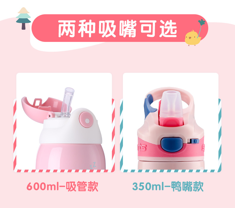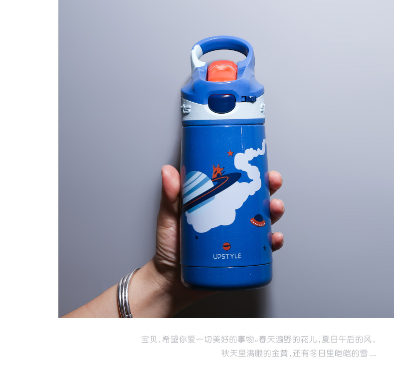 304不锈钢儿童保温杯,佩戴吸管,抗摔材质,一键开启,平整无缝,304不锈钢,医用级别!更轻,更耐腐蚀,不含BPA,表面光滑,色彩鲜亮,品质保证