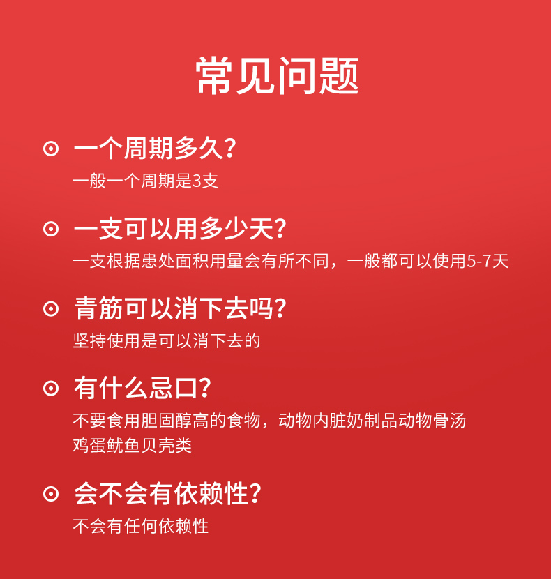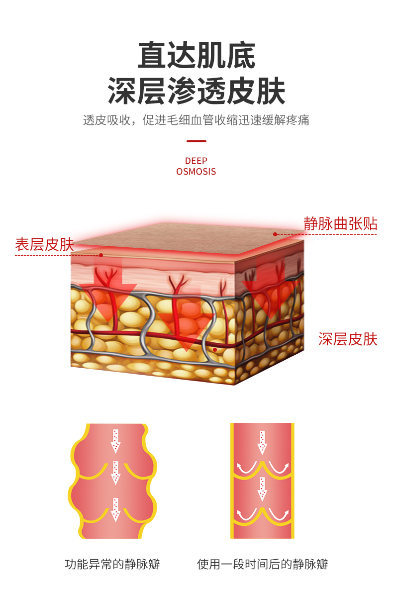 【4.9高评分】适用于静脉曲张引起的疼痛,肿胀的冷敷理疗,直接涂于患处既可,按摩5-15分钟,每日2-3次,根据情况可以适当调整使用次数。能消除青筋,缓解疼痛摆脱瘙痒的问题。