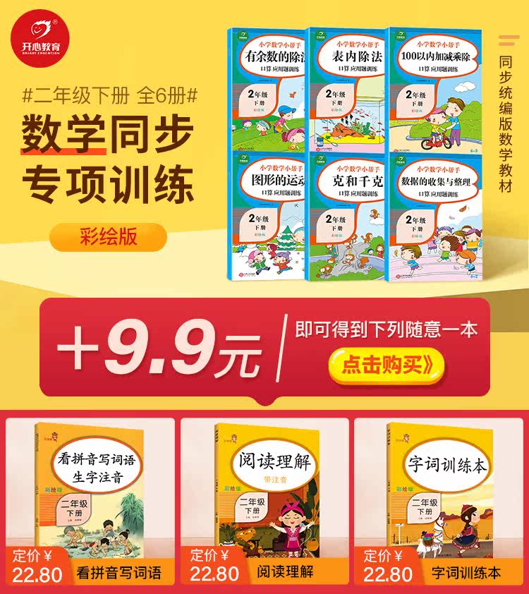 小学数学专项训练,二年级下册,同步人教版数学教材,彩绘注音版,有效分类训练,全面解析,专项训练,让孩子赢到起跑线上