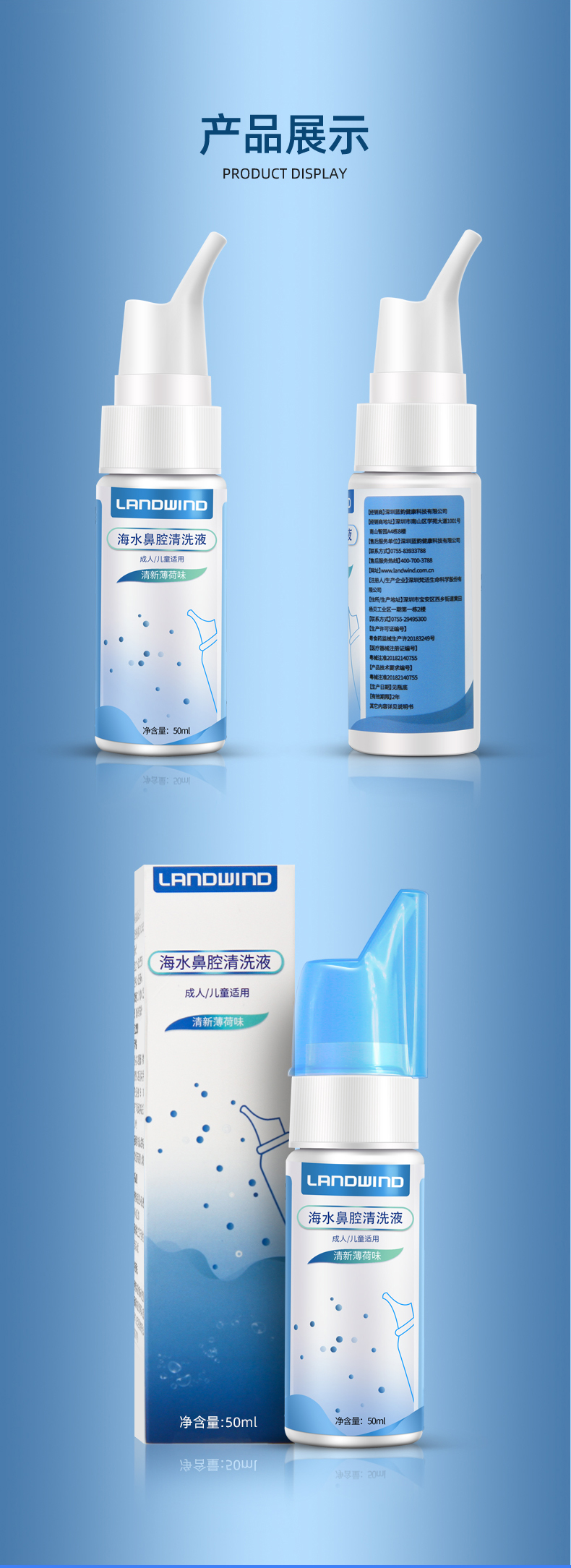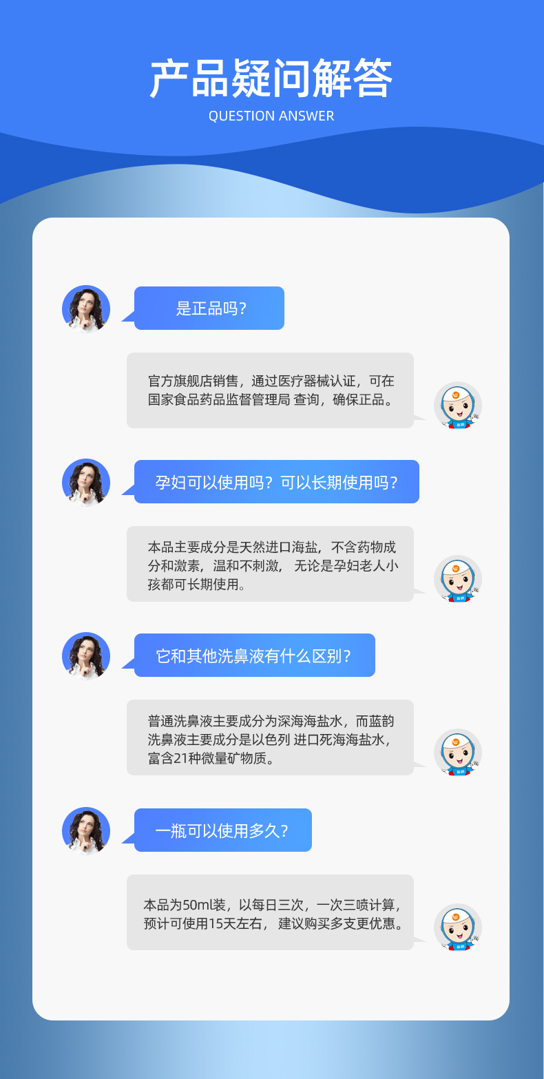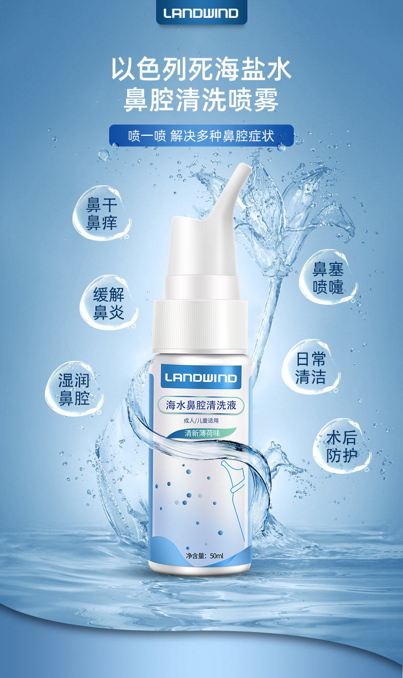 蓝韵生理性死海盐水鼻炎喷雾洗鼻器。过敏性鼻窦炎喷雾盐水瑜伽壶洗鼻器,医用品质,双喷头,成人儿童专用,鼻腔清洁不呛水【赠运费险】