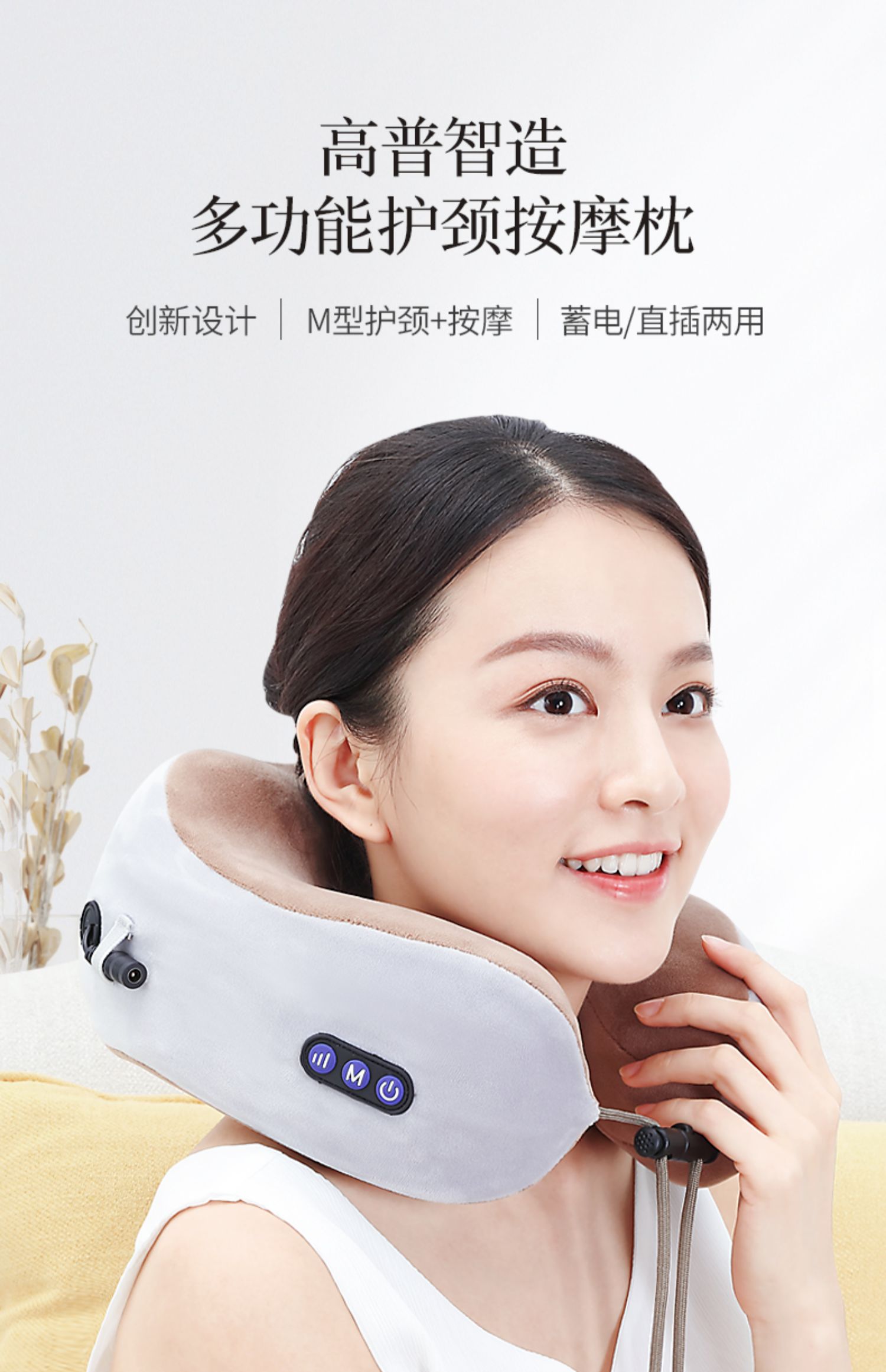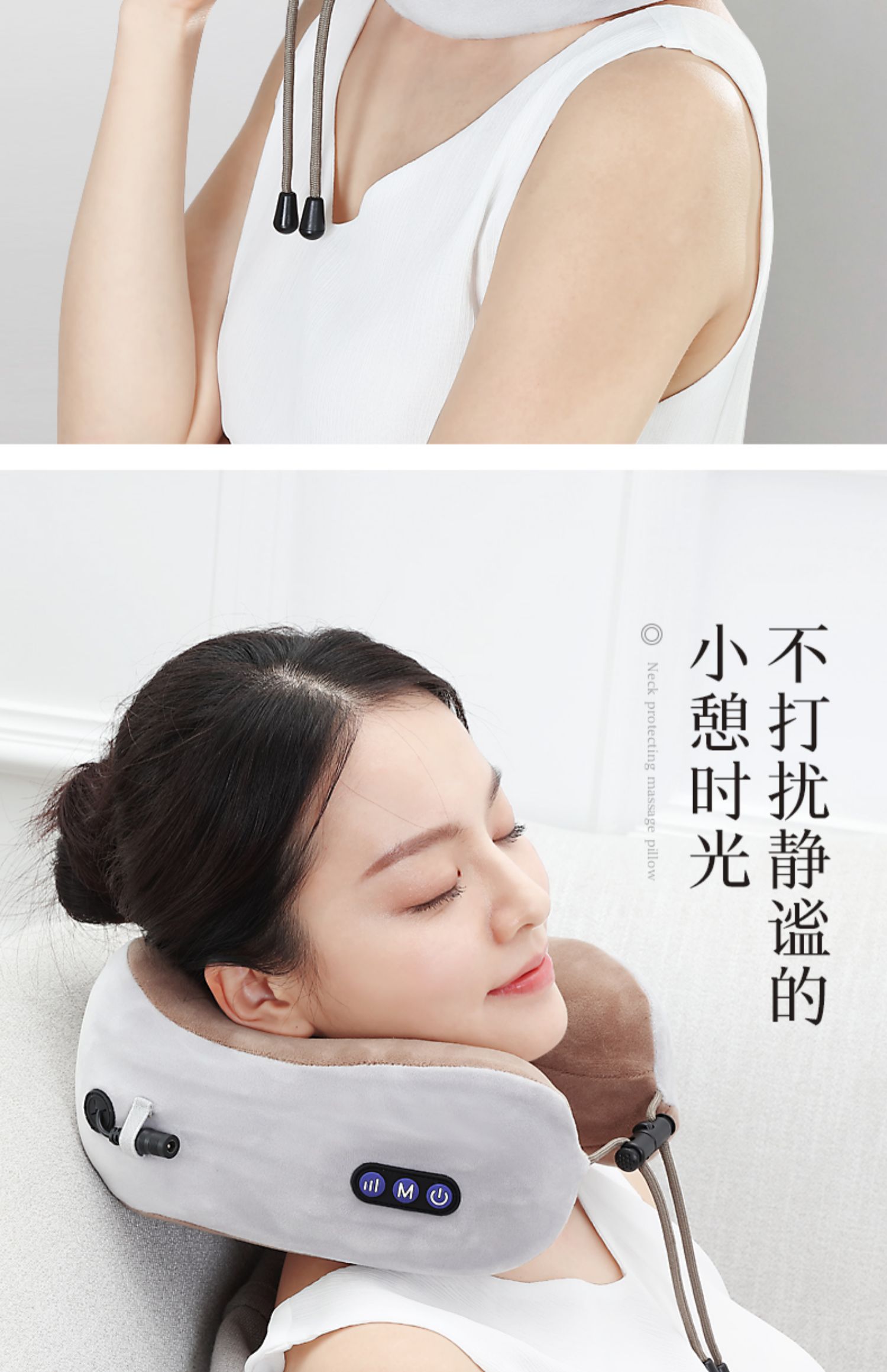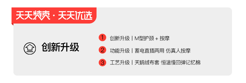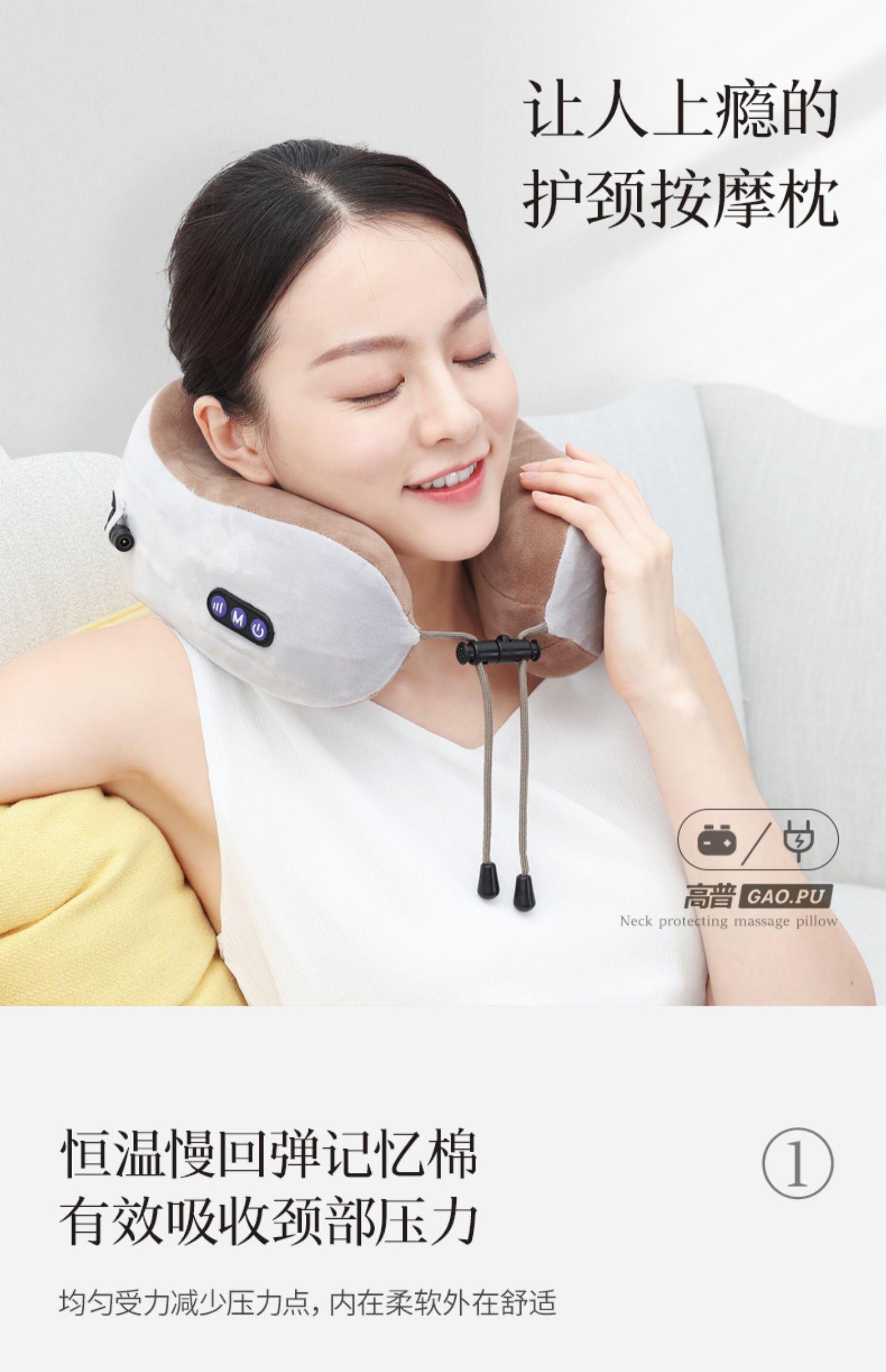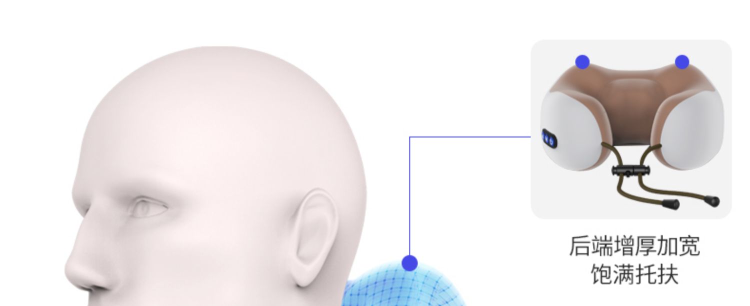 多功能U型护颈按摩枕,采用记忆回弹内芯,360°环绕,全方位支撑,仿真人按摩手法,轻重有度,体验不一样的舒适!