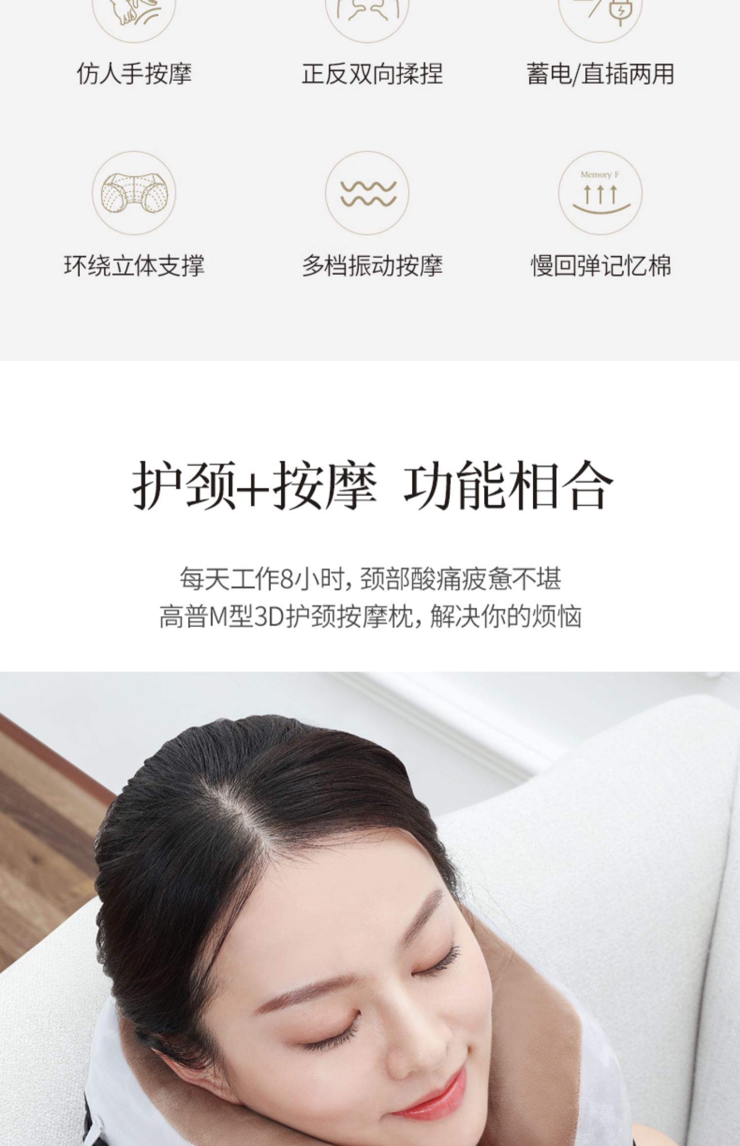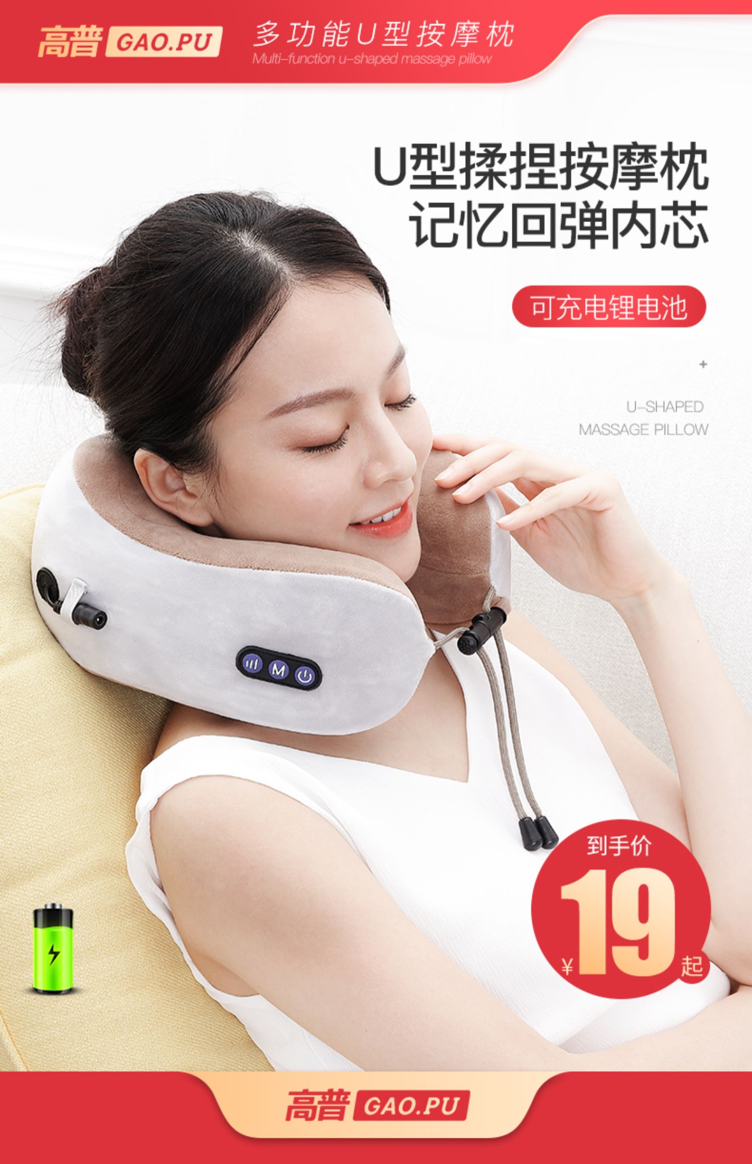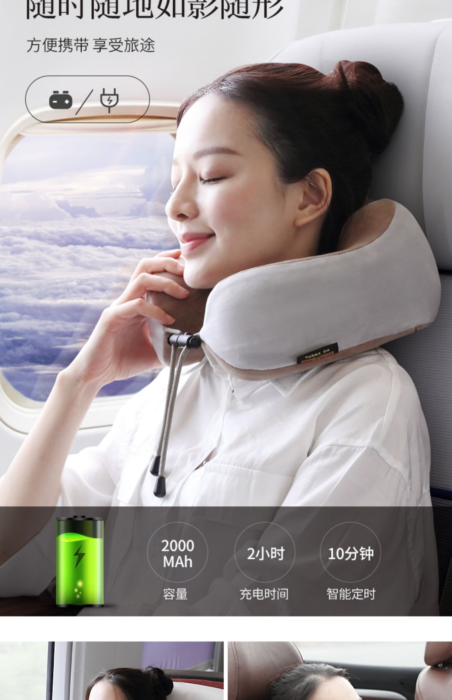 多功能U型护颈按摩枕,采用记忆回弹内芯,360°环绕,全方位支撑,仿真人按摩手法,轻重有度,体验不一样的舒适!