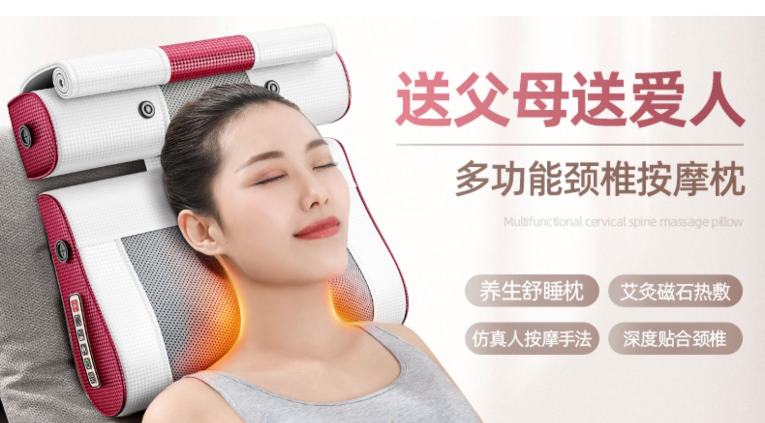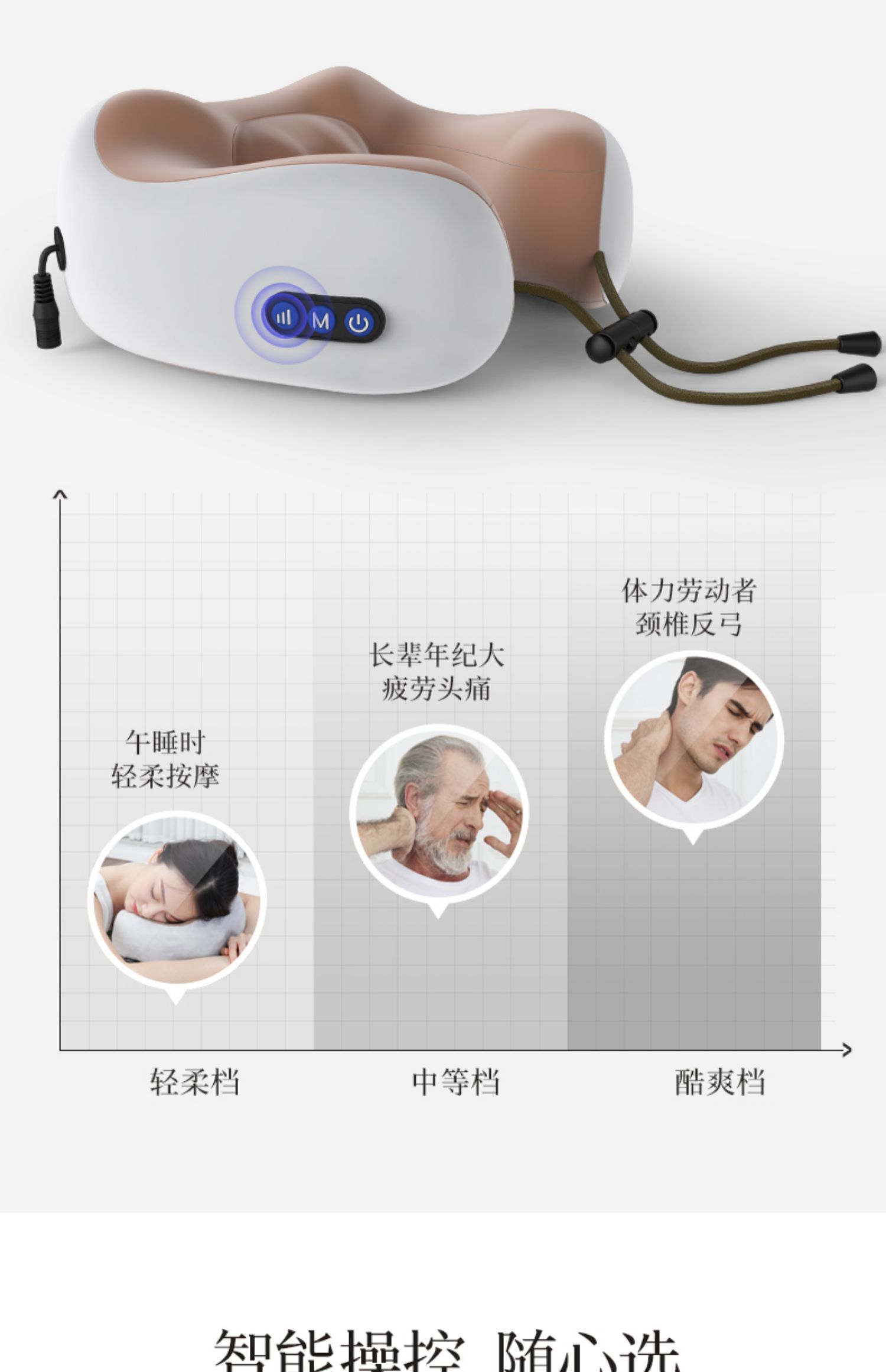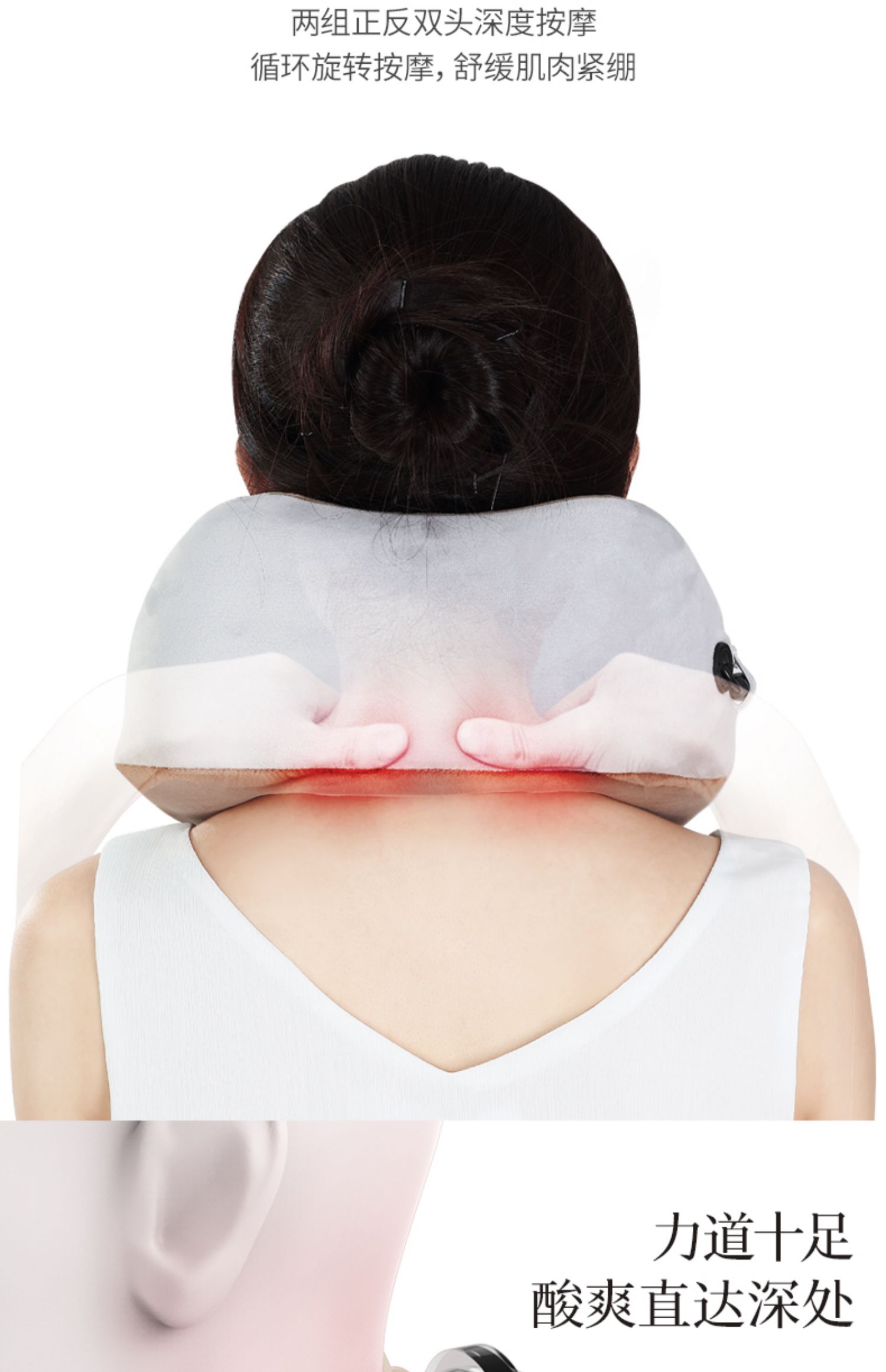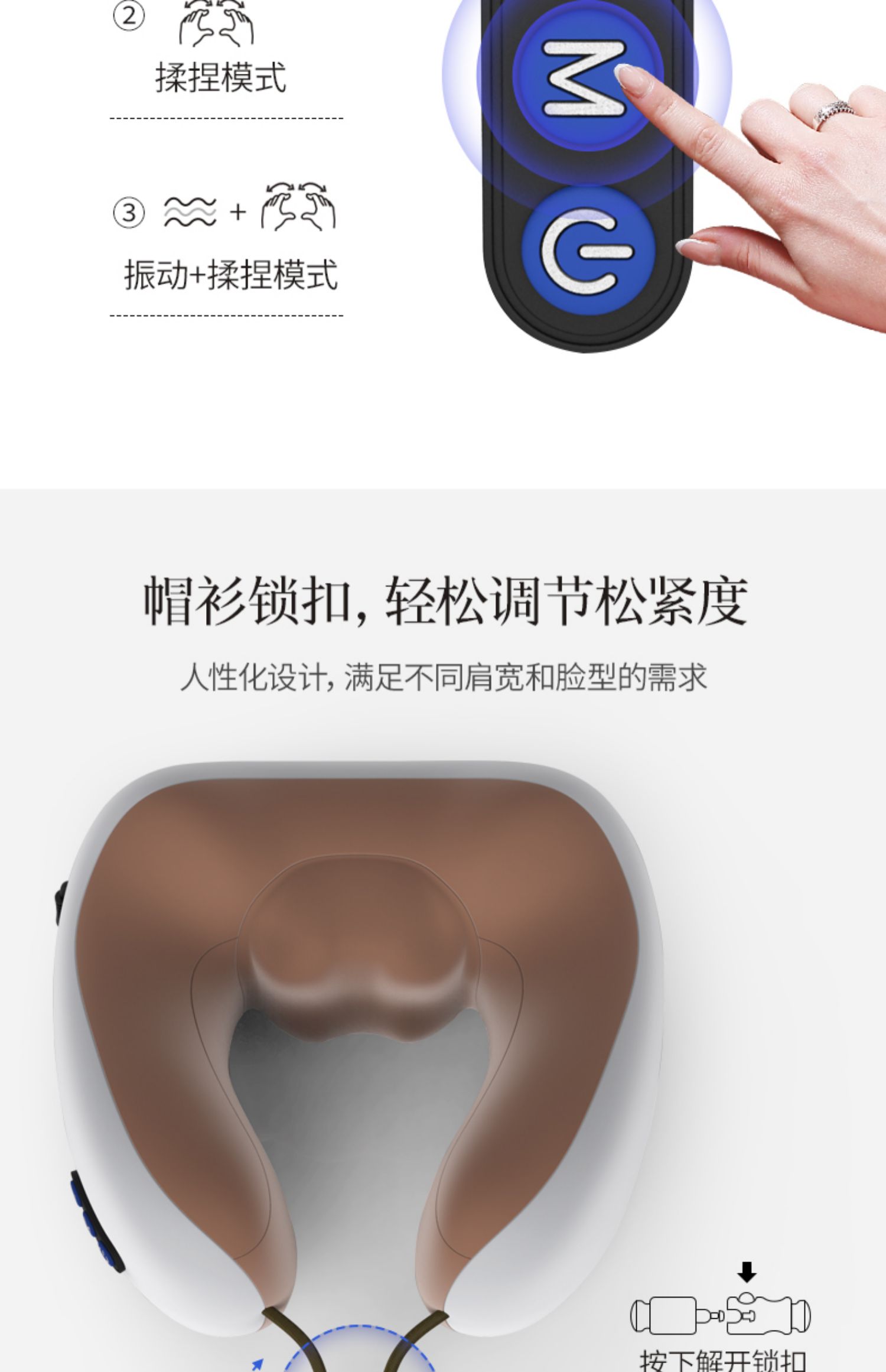 多功能U型护颈按摩枕,采用记忆回弹内芯,360°环绕,全方位支撑,仿真人按摩手法,轻重有度,体验不一样的舒适!