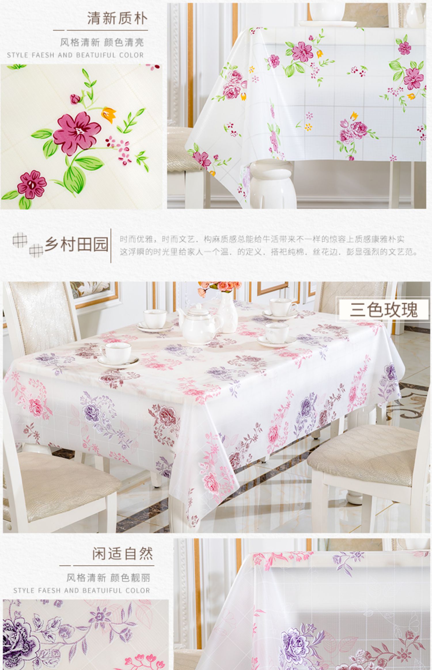 田园气息,EVA桌布,防水防油,质地轻薄,无味无毒,多色可选,可定制尺寸,别样的精美桌布,总能给你的生活带来不一样的惊喜。