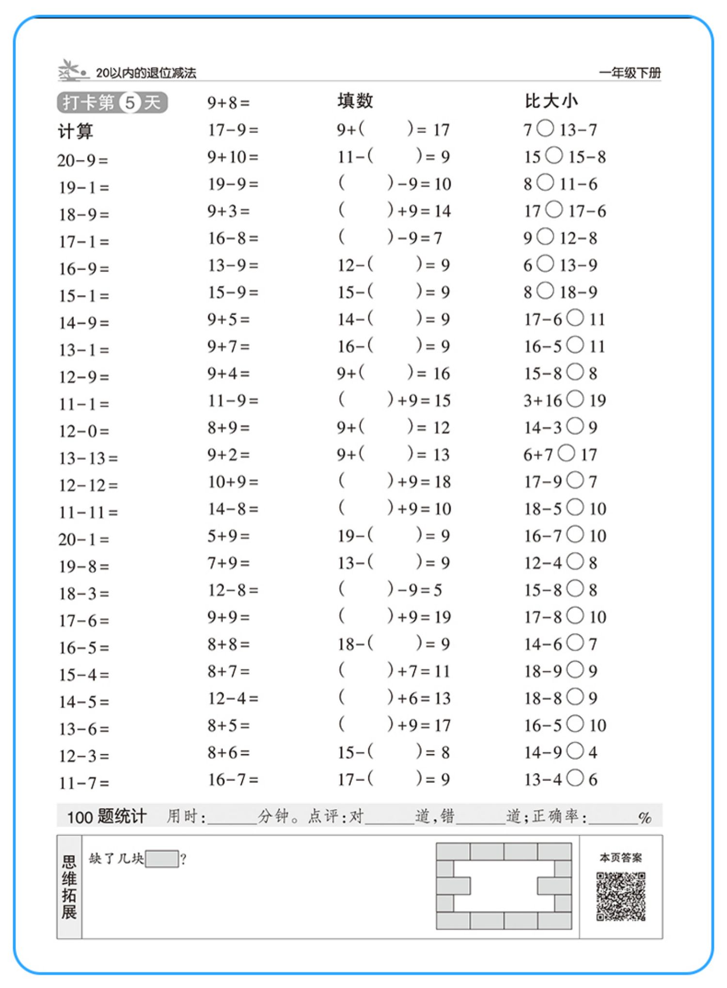 【每天100道/共10000道】每天一页,100道口算计时训练、坚持打卡,家长批改,记录孩子的用时、正确率,孩子改错,每日都有收获!活动价5.8元,宝妈速抢~【赠运费险】