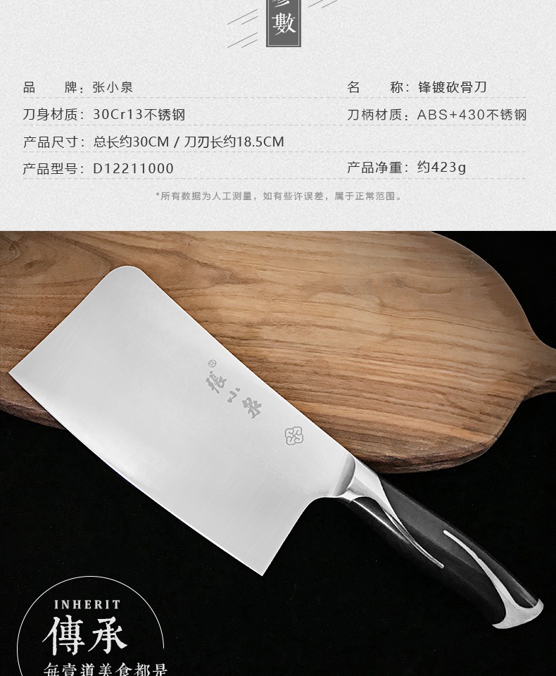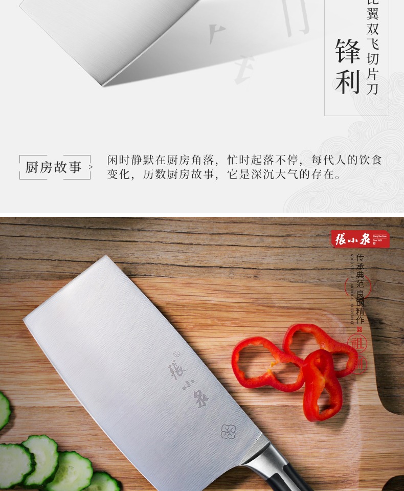百年品牌匠心独居,一体成型工艺,锋利,防锈耐磨,结实耐用,厨房必备,选切刀就选张小泉,品牌力量你值得拥有! 89 30 59