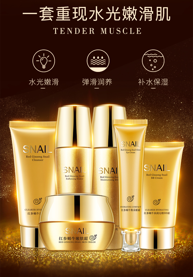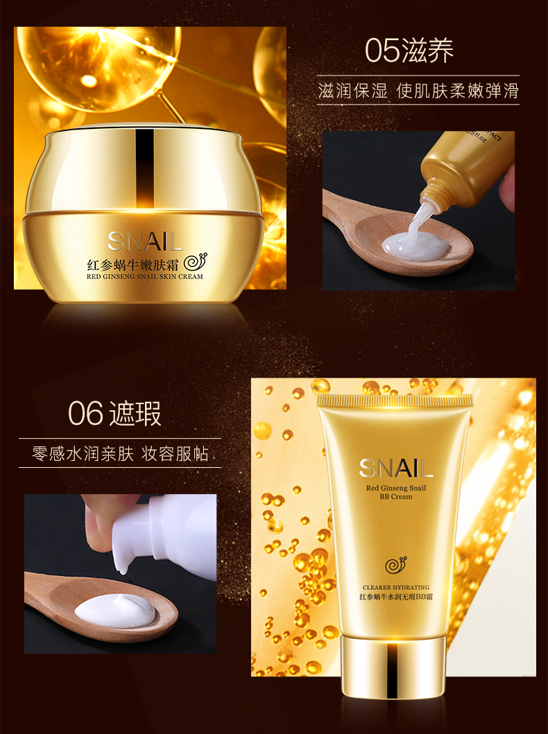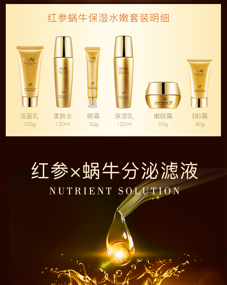 【依漾】红参蜗牛原液护肤品套装,6件套,只要89元!!这个冬季一步到位,洁面乳+爽肤水+眼霜+精华乳+嫩肤霜+BB霜,一套重现水光嫩滑肌肤,专利授权,韩国进口原料!