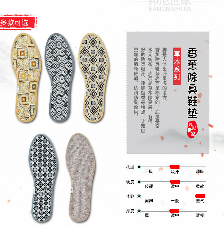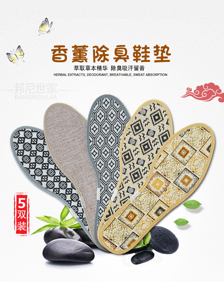 【5双装】草本香薰除臭鞋垫,净味清新,长效持久,透气吸汗,无纺布底,天然健康,精致缝边,让双脚更加清新舒适。