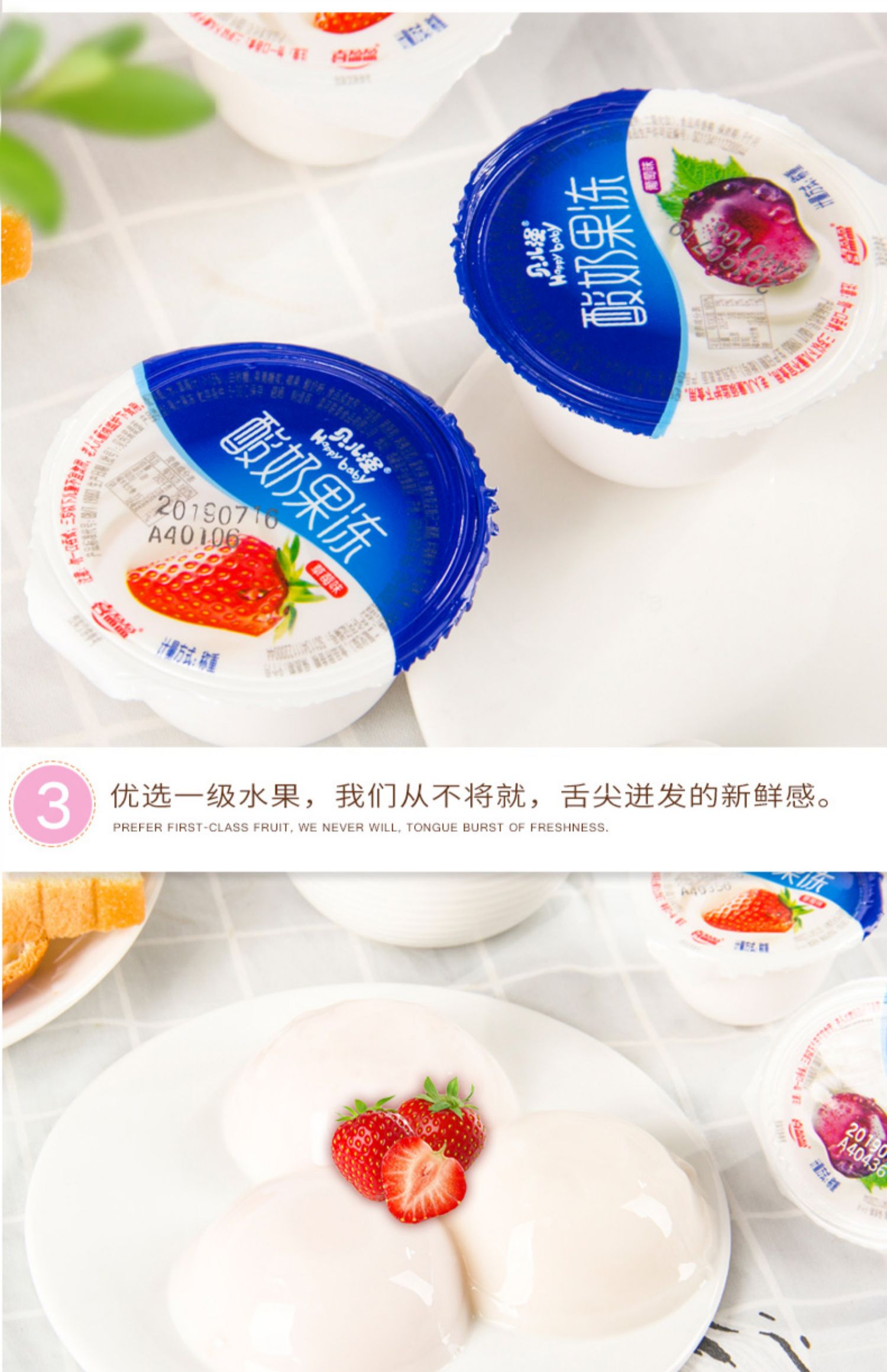 【超市26.8元1斤,我们足足17.9元2斤多】没吃过的一定要尝尝,酸奶调制,入口即化,真的超好吃!注意注意:这款果冻不含凝胶/魔芋胶,不涨肚易消化,放心给孩子吃!饭后吃几个还能助消化【2斤29.8】