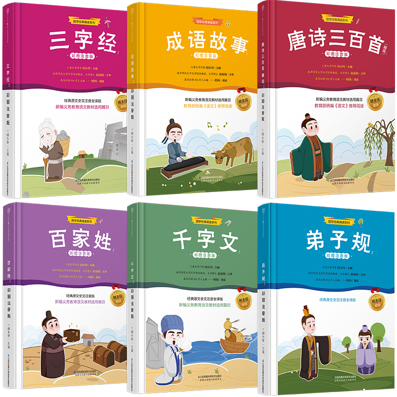 【教育部统编】【扫码听,6本装】弟子规+三字经+唐诗三百首+成语故事+千字文+百家姓,彩图注音版,插图精美,内容丰富,培养孩子课外阅读兴趣,熏陶国学经典文化。【赠运费险】