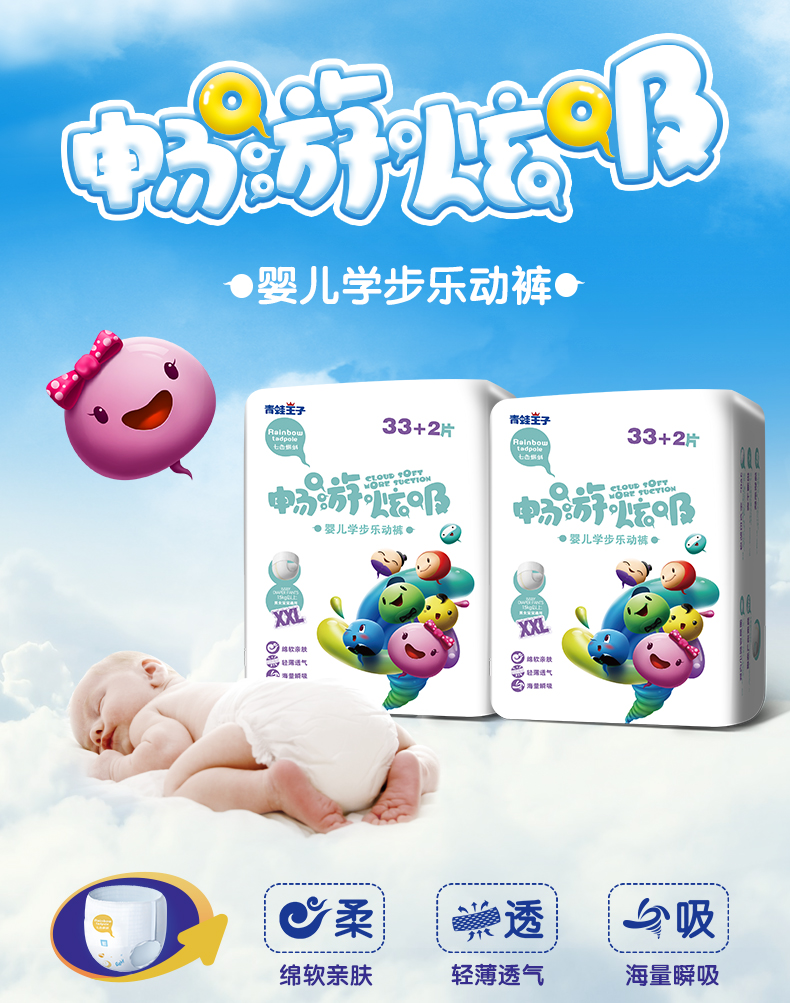 屯年货啦!贾乃亮代言【青蛙王子七色蝌蚪品牌】【下单备注尺码】可爱宝贝超薄拉拉裤尿不湿纸尿裤,柔软透气,轻薄舒适,瞬吸大容量,不过敏不红屁股。【正品保证】
