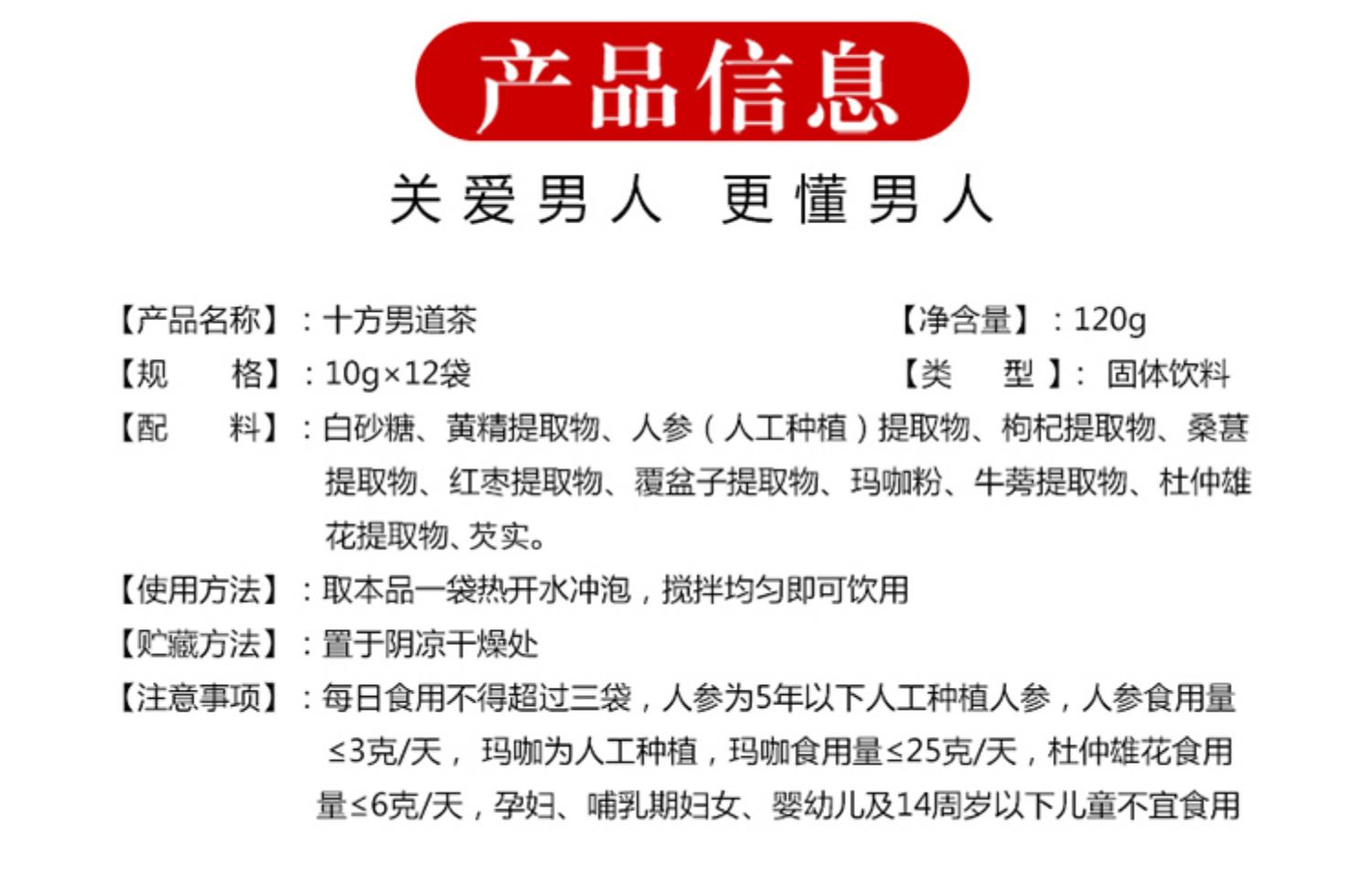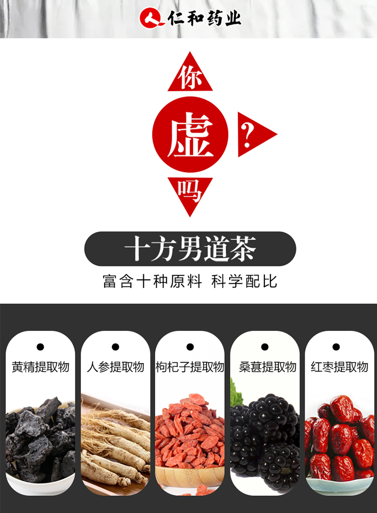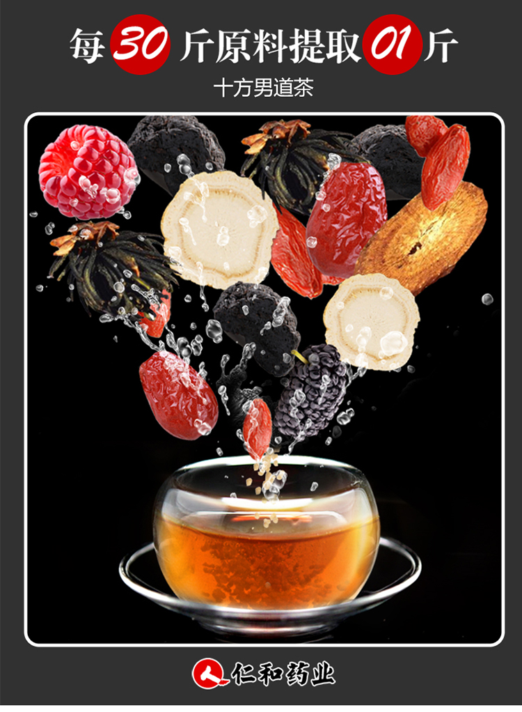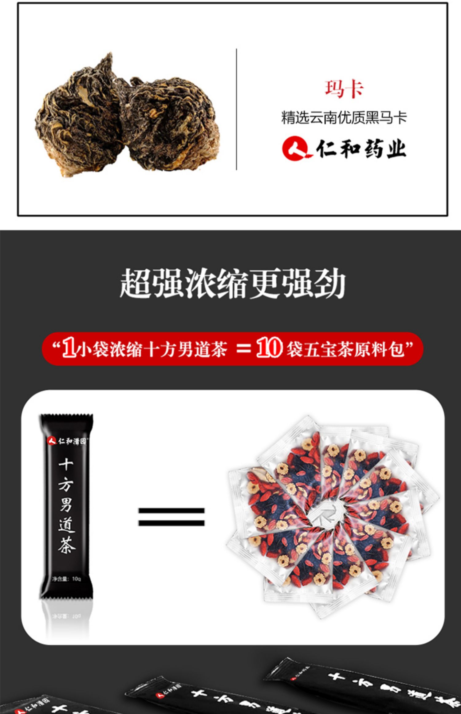 【仁和药业】男人的秘密武器,十味组方,1小袋浓缩十方男道茶,相当于10袋五宝茶原料包,科学配比。