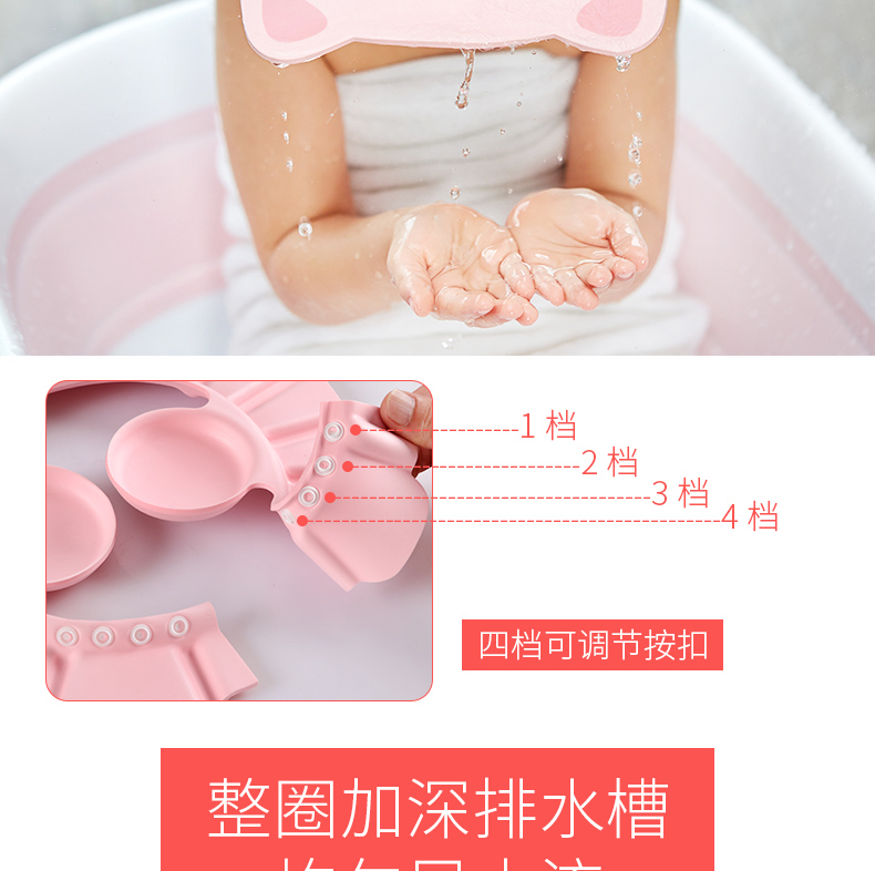 宝宝洗头神器,妈妈一人轻松搞定宝宝洗头,不勒小脑袋,加大护耳,整圈排水槽,暗扣调节,加大加厚,四档可调,适合不同的头围,快给宝宝买一个吧!!!