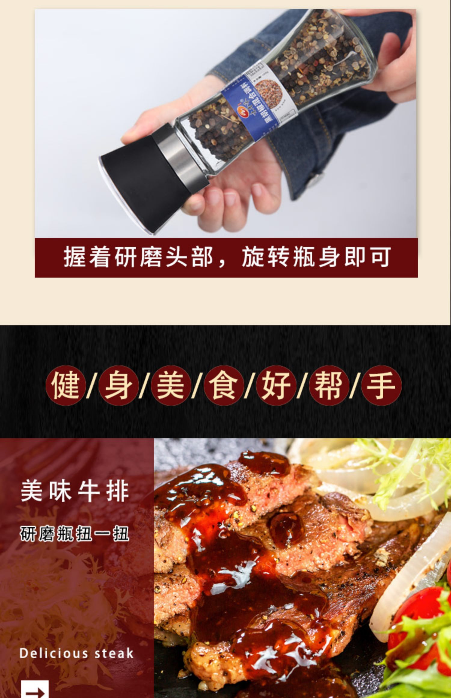 出口欧美黑胡椒,现吃现磨,真材实料,鸡胸肉健身低脂,100g大容量,西餐沙拉意面调料!
