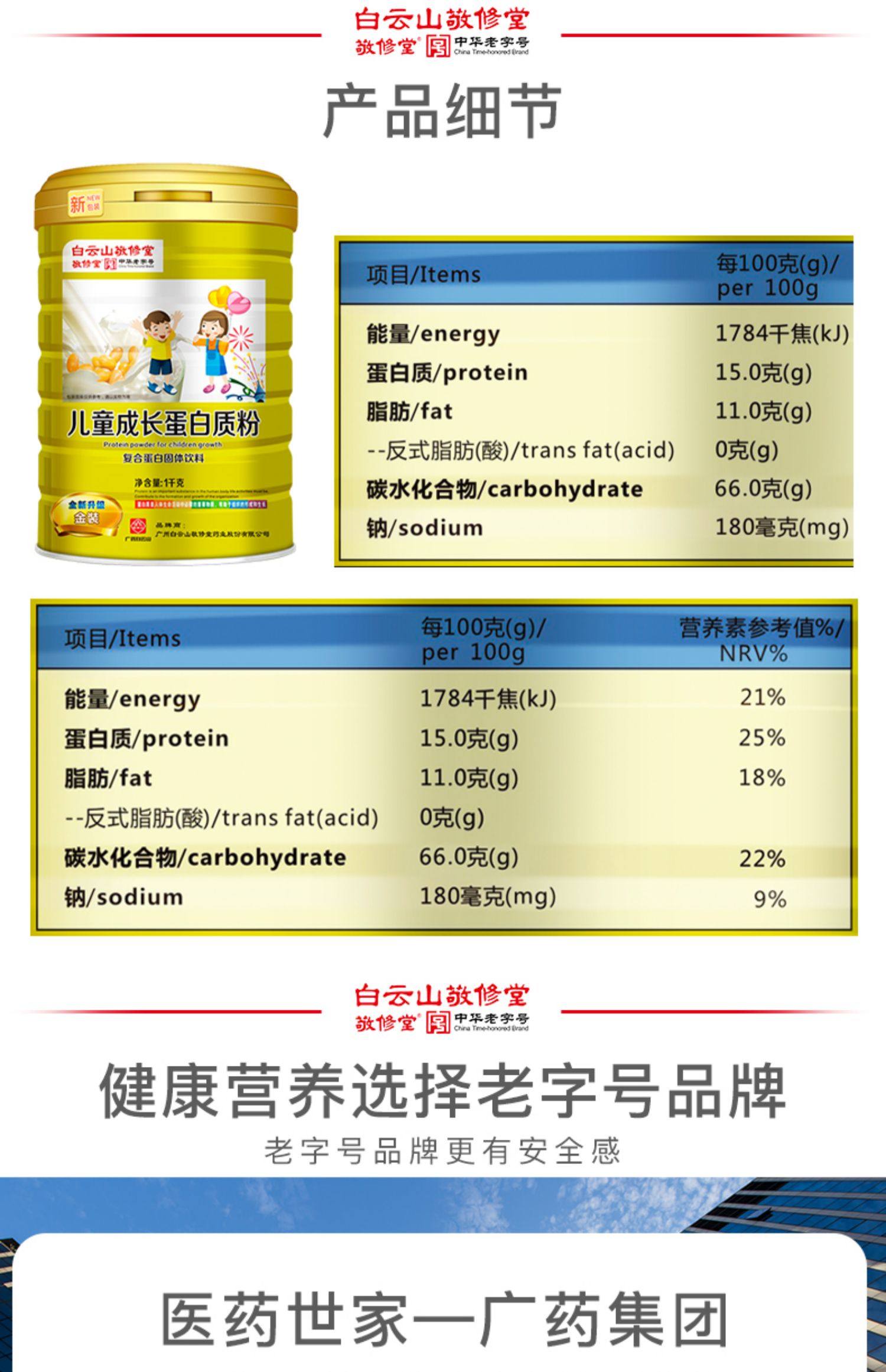 白云山敬修堂儿童成长营养蛋白质