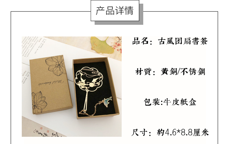 古风团扇,中国风金属书签,古典流苏坠子文艺小清新创意礼品。精致漂亮,爱不释手,做工精致,细节随处可见。