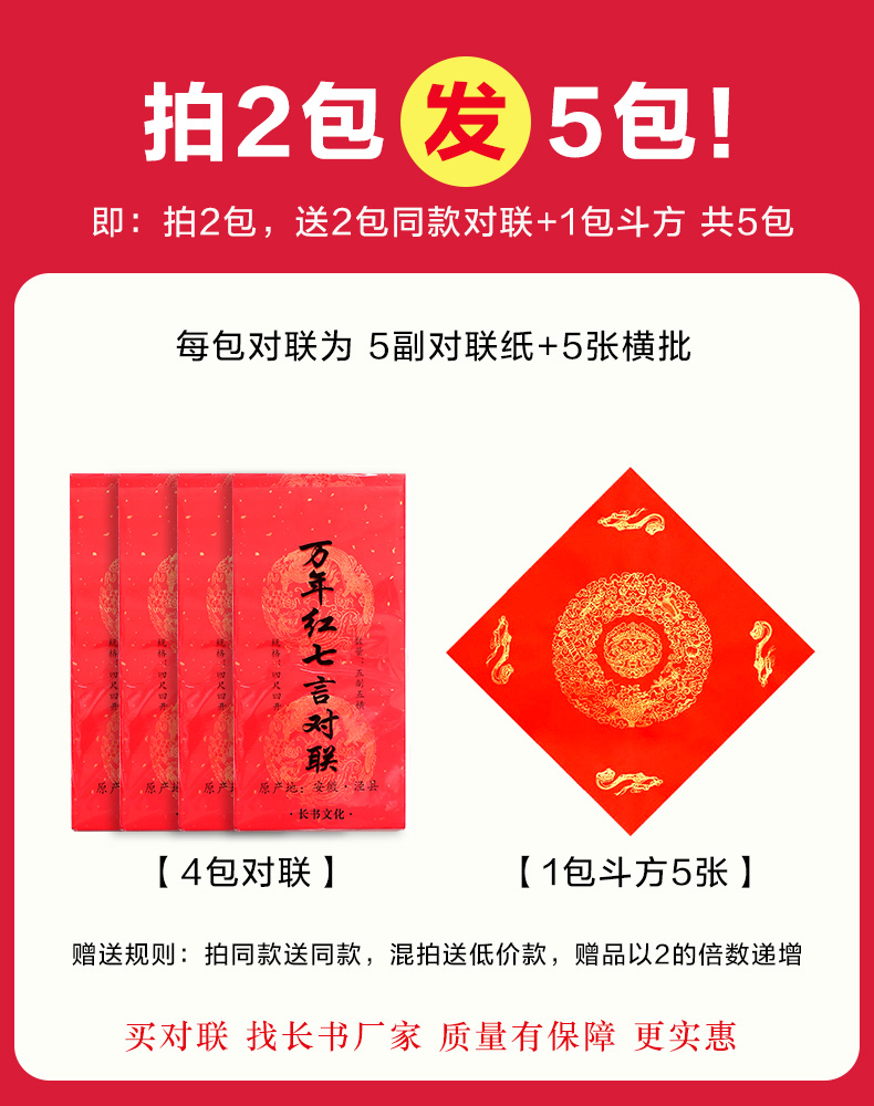 (秒杀,卷后价只需1.8元)拍三还送二,新年空白春联大礼包,颜色鲜艳,更显喜庆,加厚宣纸,书写顺畅,两次上色,持久不褪色,尺寸齐全,新居、乔迁、必备之选!