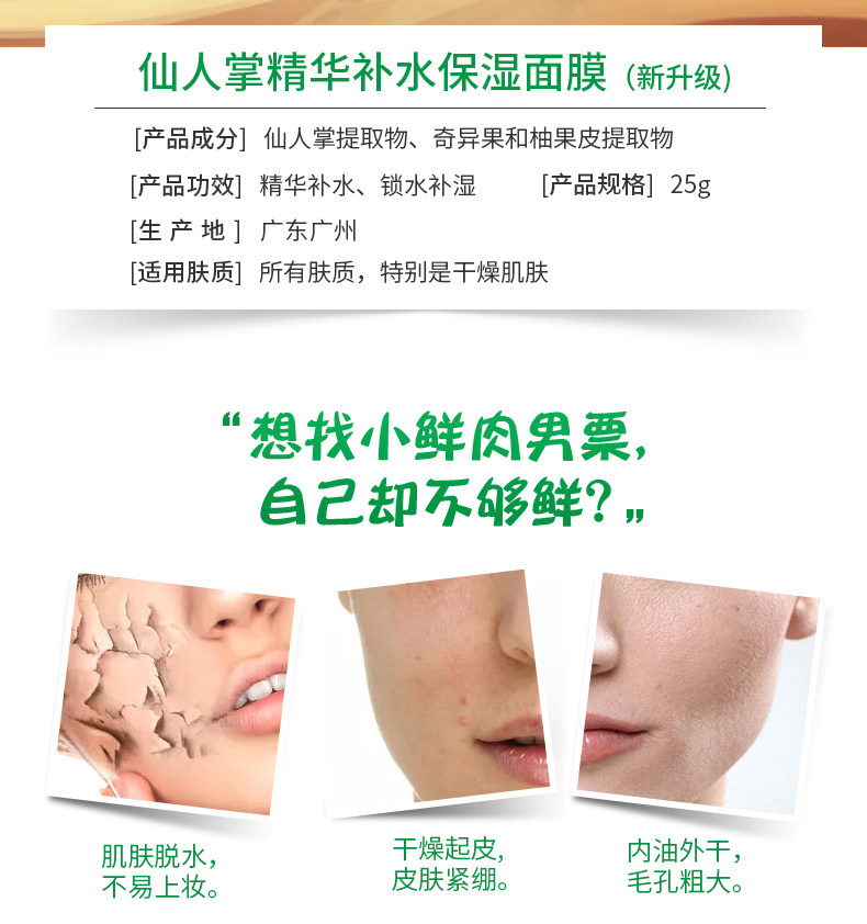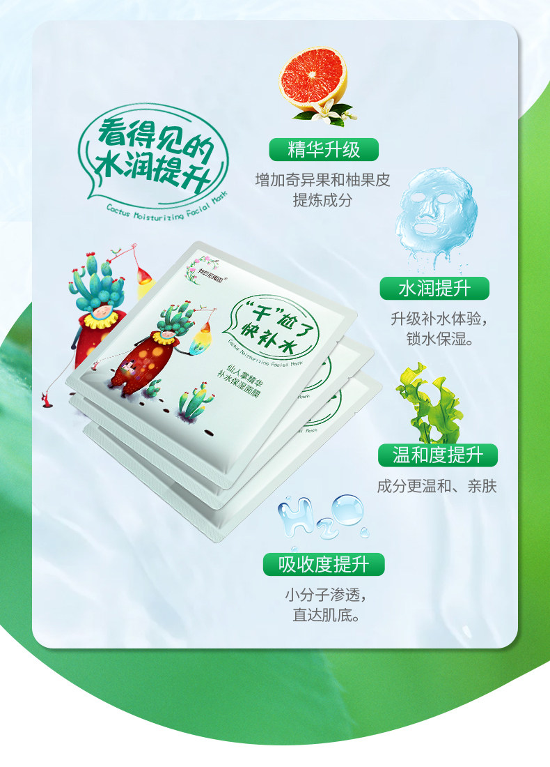【推荐理由】仙人掌植物精油补水面膜,美白滋润,收缩毛孔,轻薄贴合,一款会呼吸的面膜,植物护肤,植物精油面膜护理组合,享受每一寸滋养