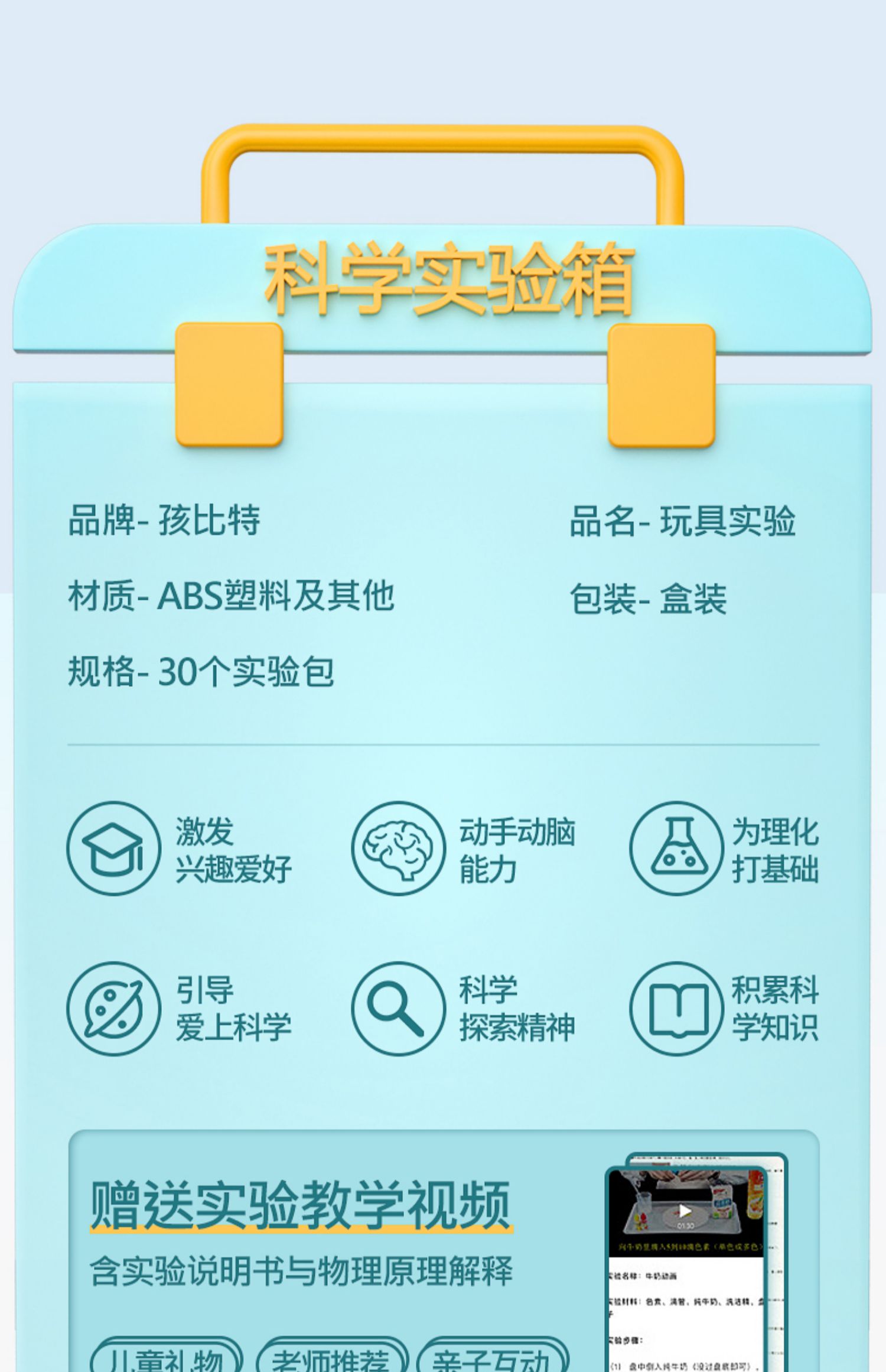 【送给孩子~】加强开动大脑和动手能力,食品级材质,适合各个年龄段的孩子,30个小实验,学多少次都不如行动一次,让你的宝贝赢在起跑线吧!
