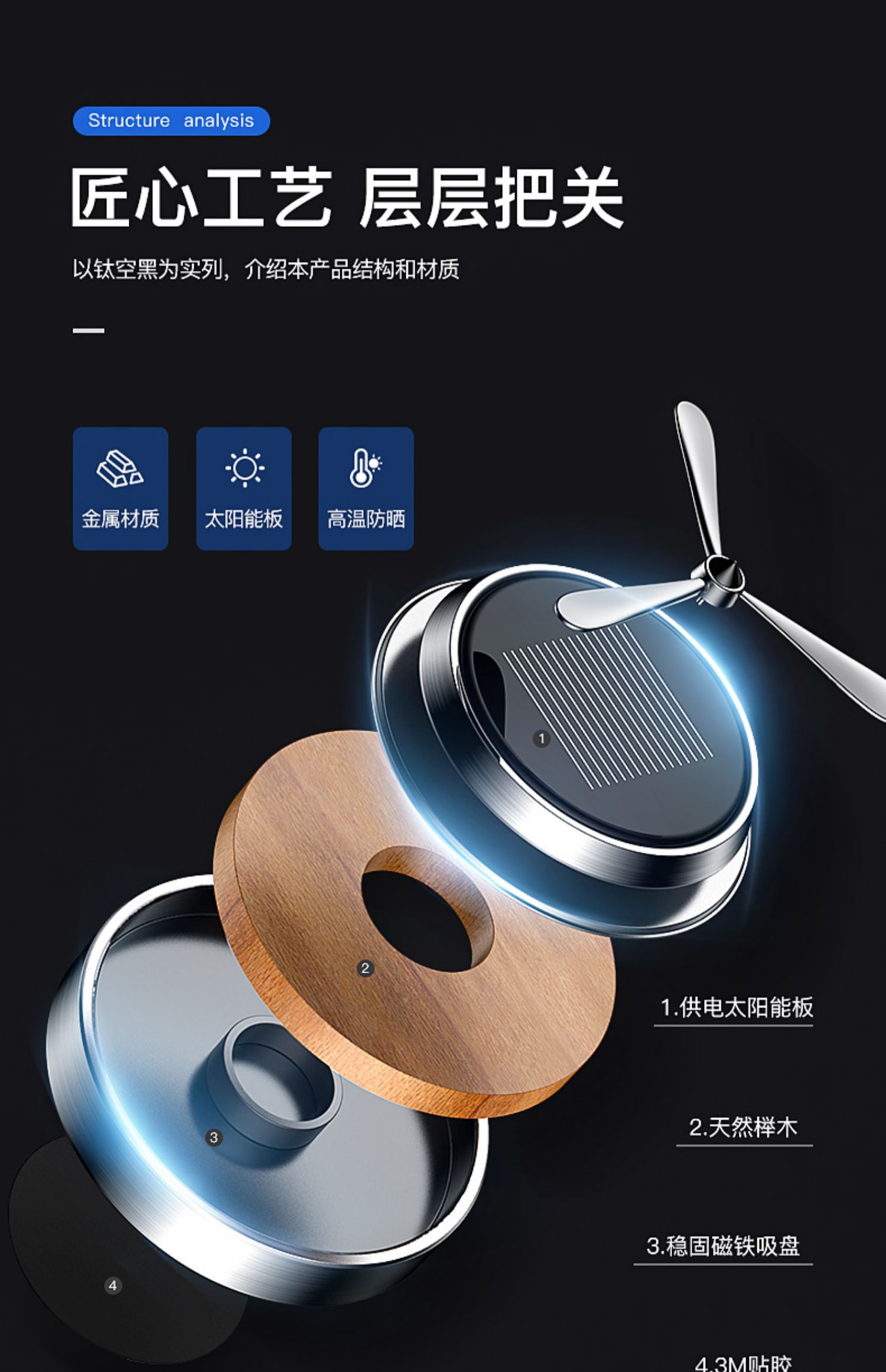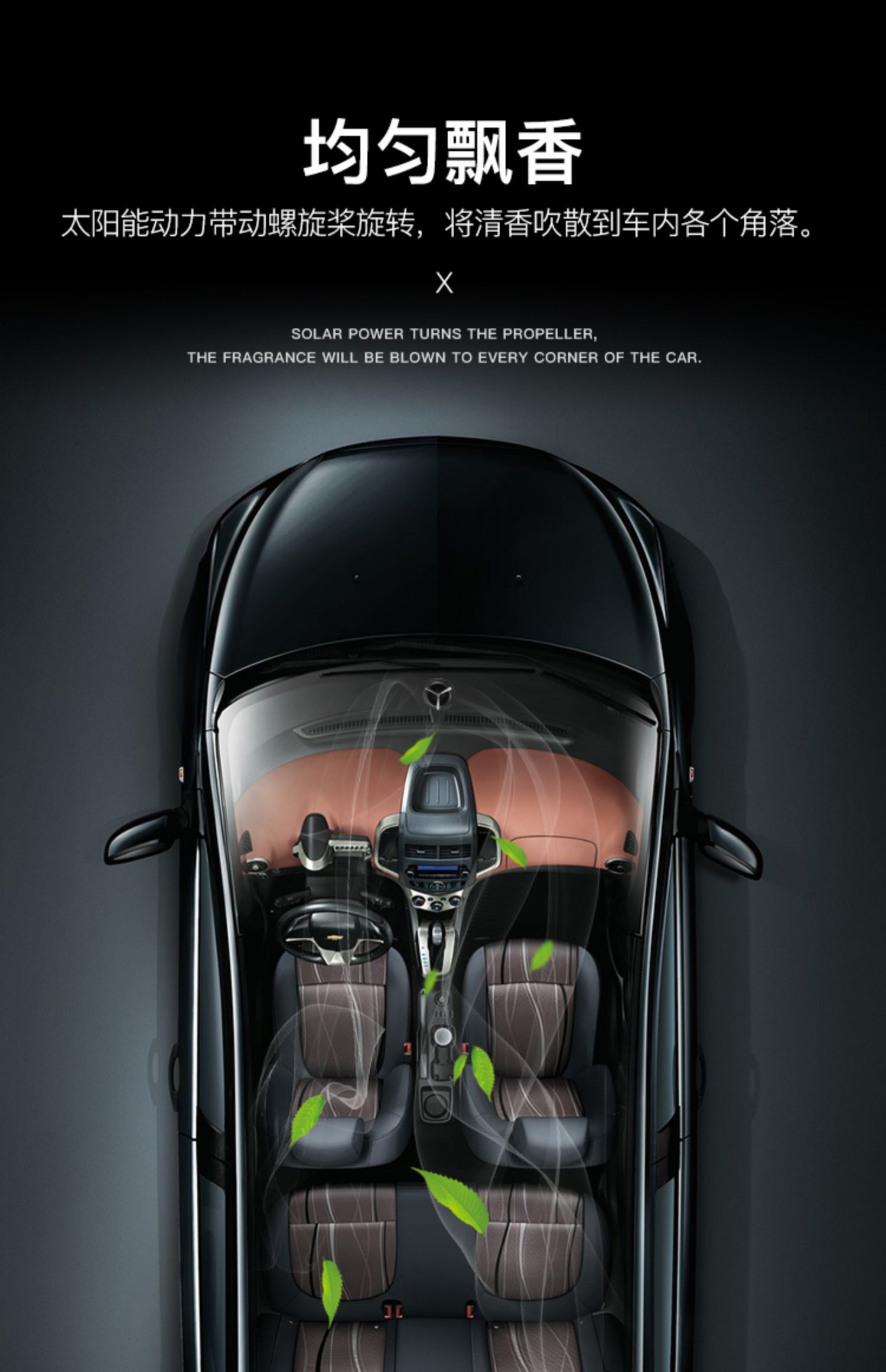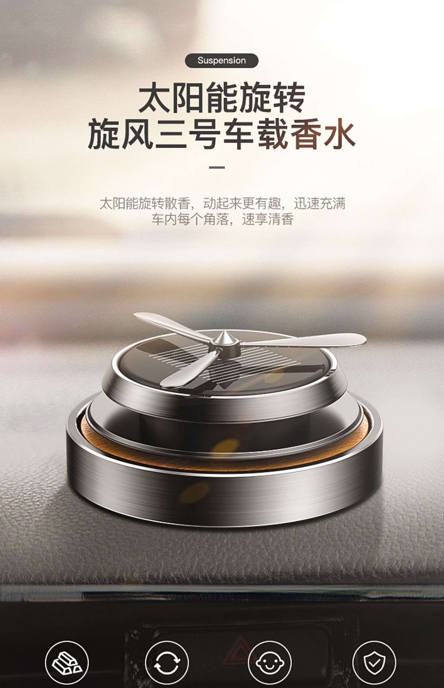 天然榉木,进口精油,太阳能智能旋转香水,光线越强,旋转越快。