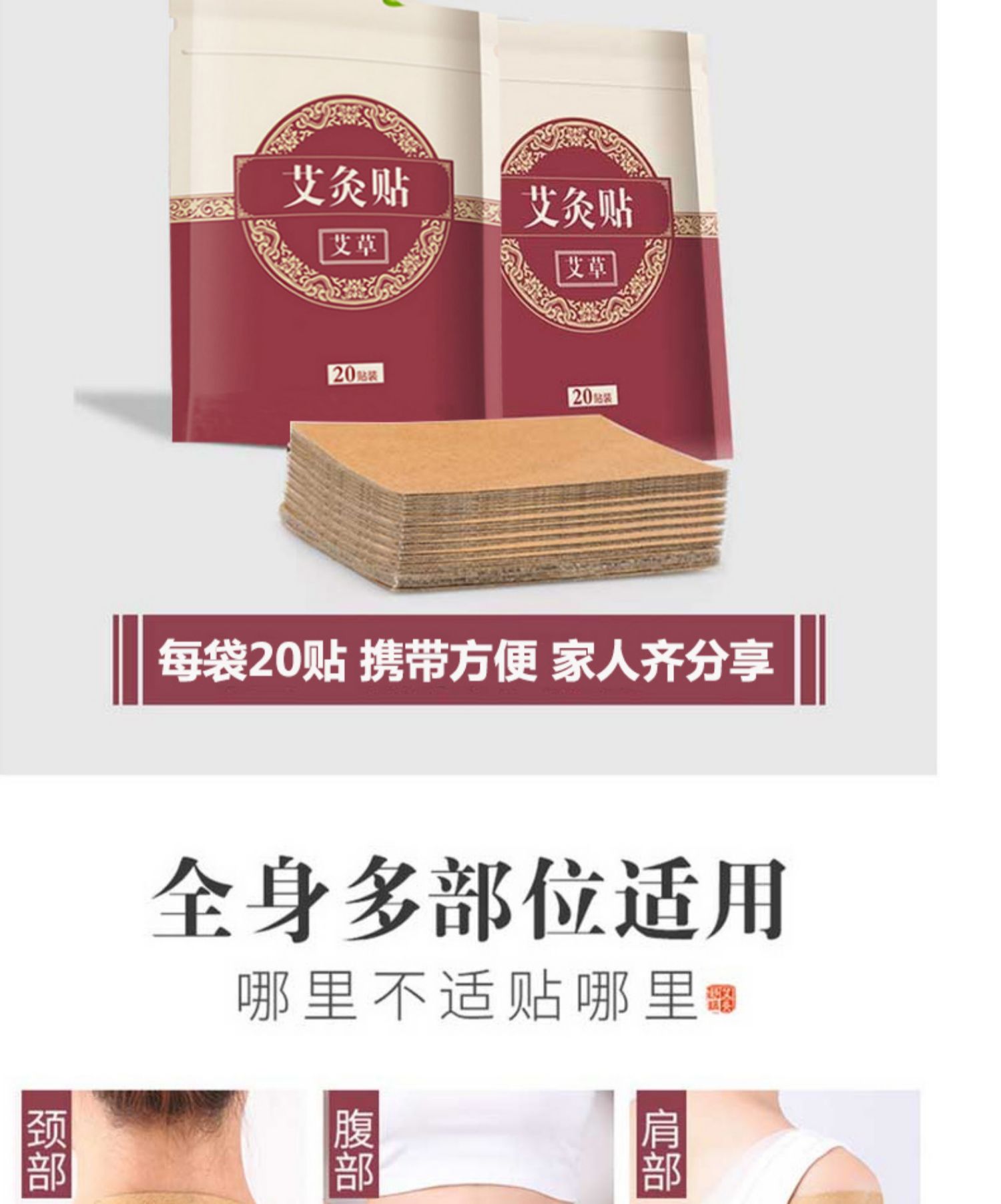 一袋20贴,共100贴。可祛湿气驱寒、暖宫寒、缓解颈椎、肩周、腰腹、关节等不适!一撕即贴,全身都能用,哪里不舒服就贴哪里~