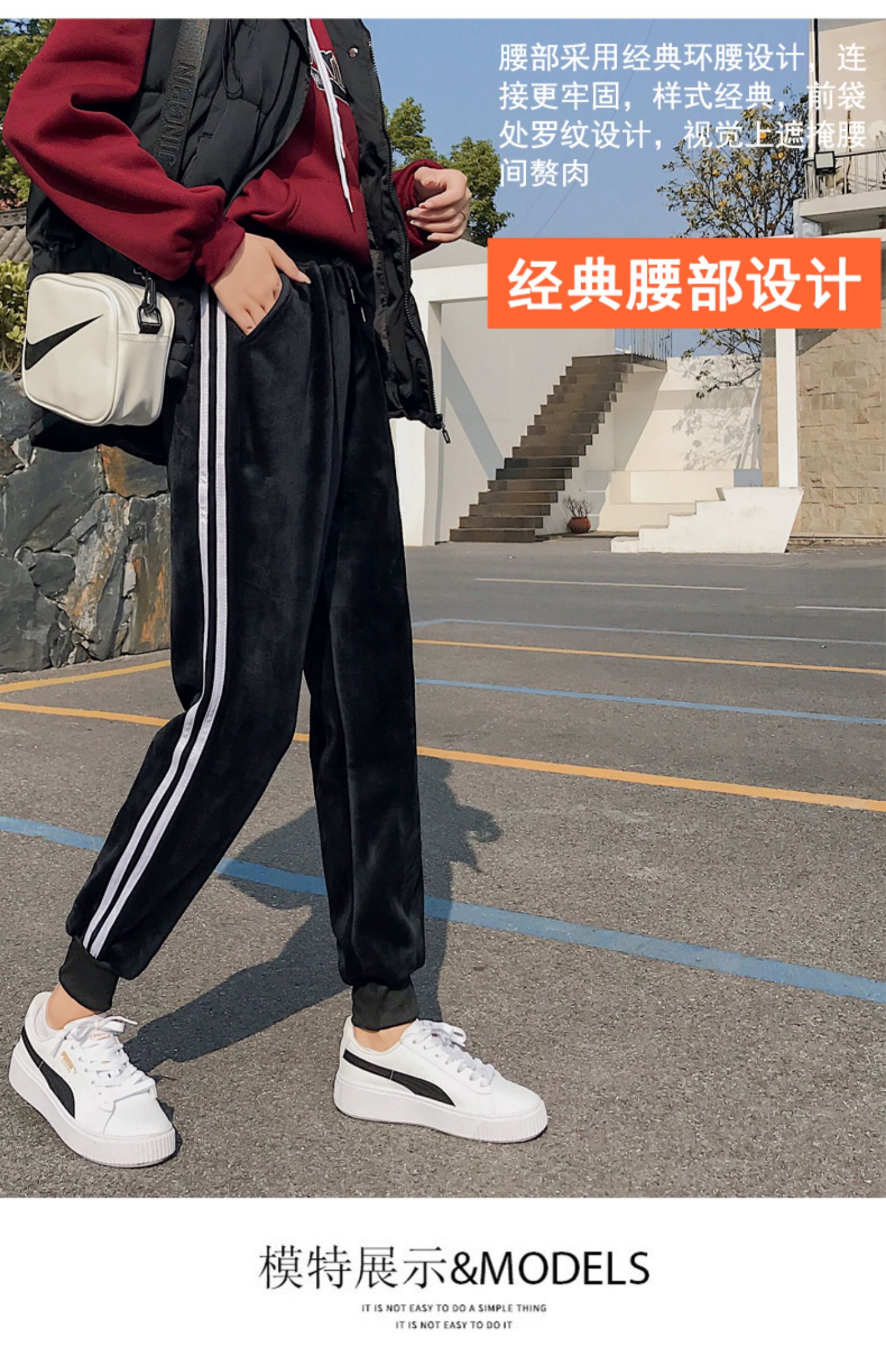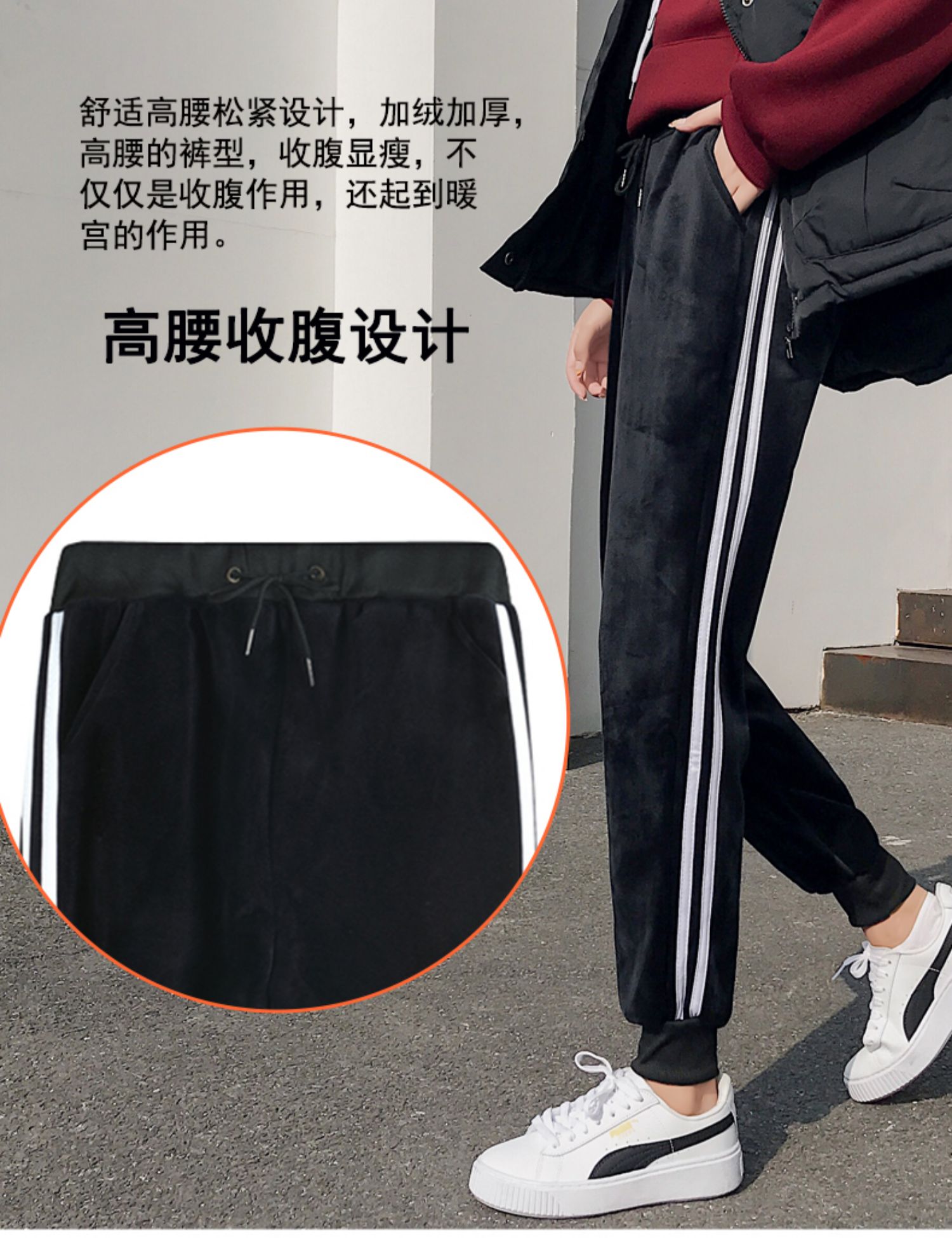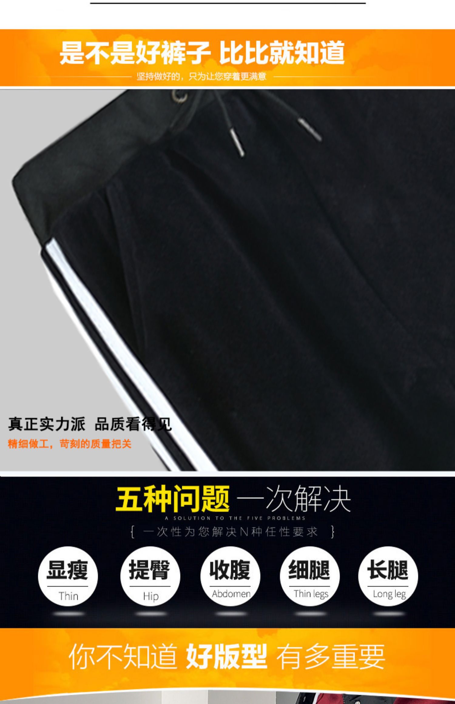 金丝绒运动裤,里外加绒,绒毛细密,穿出好身材,完美拯救你的身高曲线,让你瘦成一道闪电!温暖无需负重!一条百分百好评反馈的潮流裤~