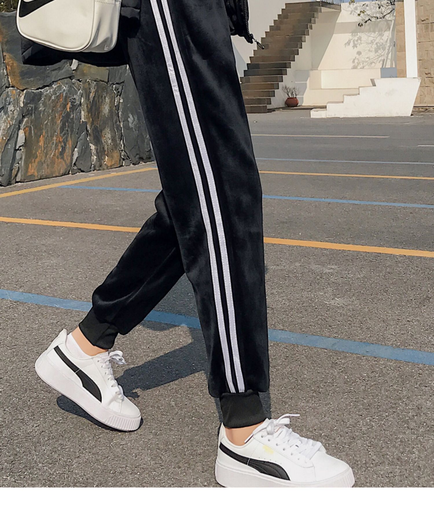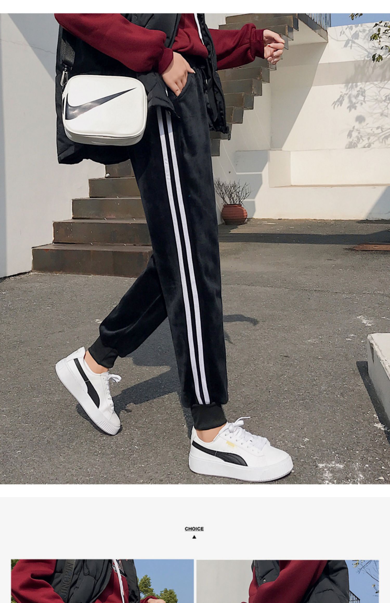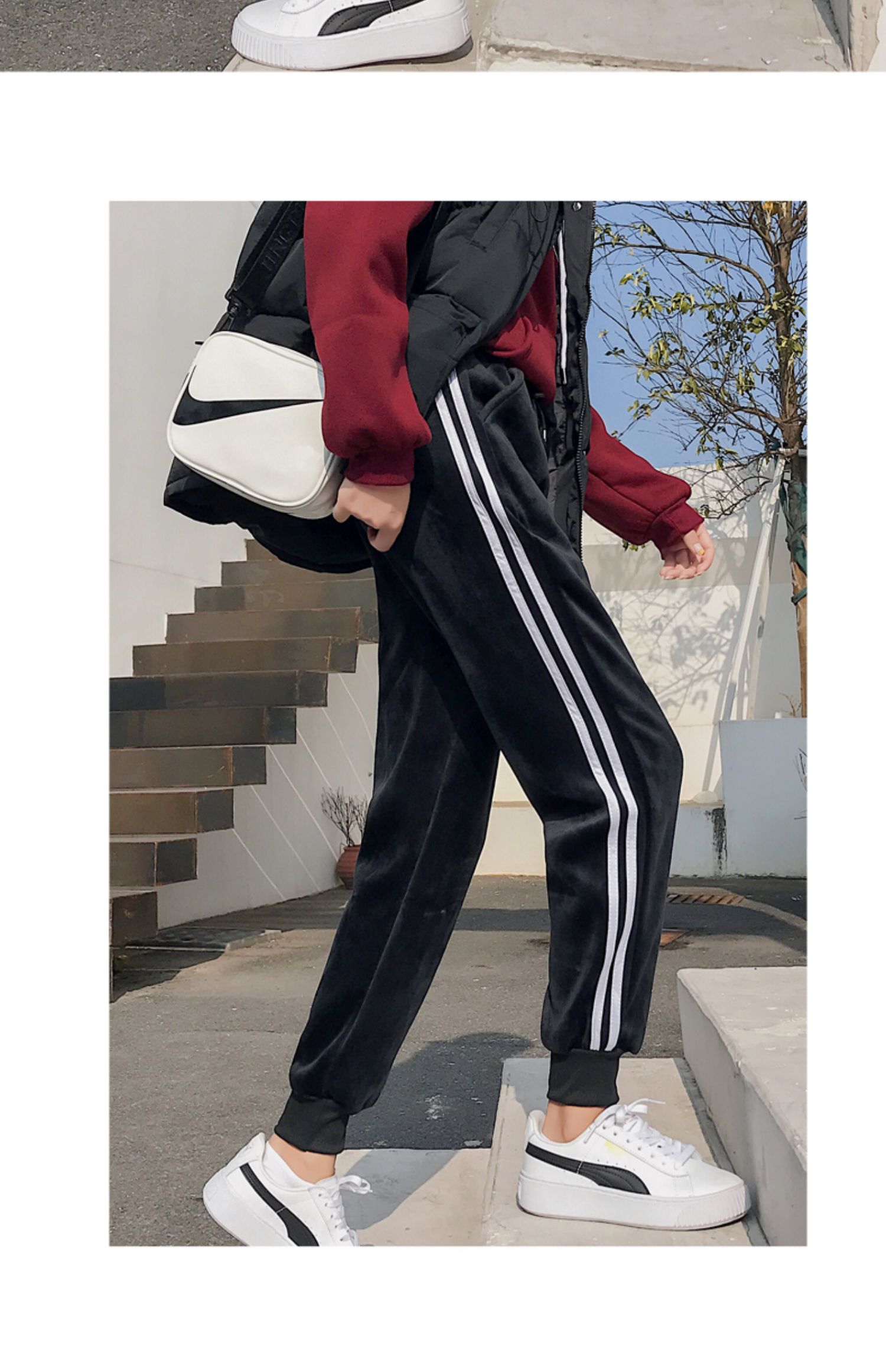 金丝绒运动裤,里外加绒,绒毛细密,穿出好身材,完美拯救你的身高曲线,让你瘦成一道闪电!温暖无需负重!一条百分百好评反馈的潮流裤~