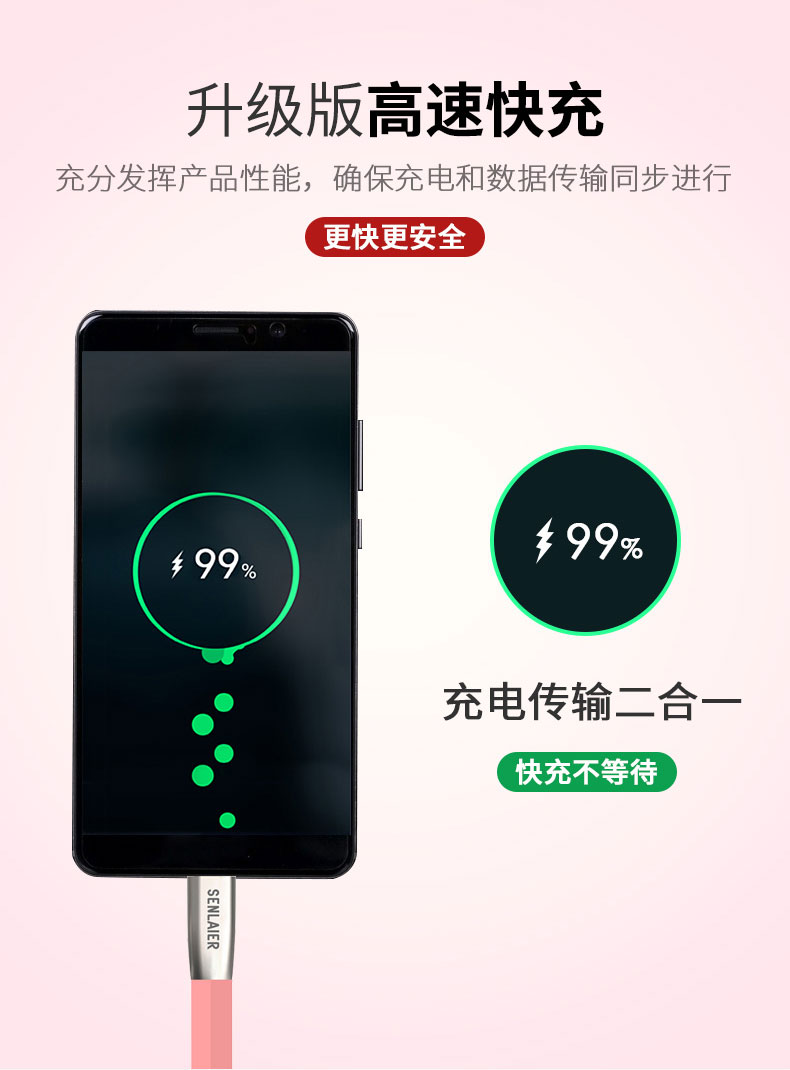 速充电,兼容多种设备,电流稳定传输,优质纯铜芯线,提速80%,实现快充真提速,经过严格测试,安全耐用。