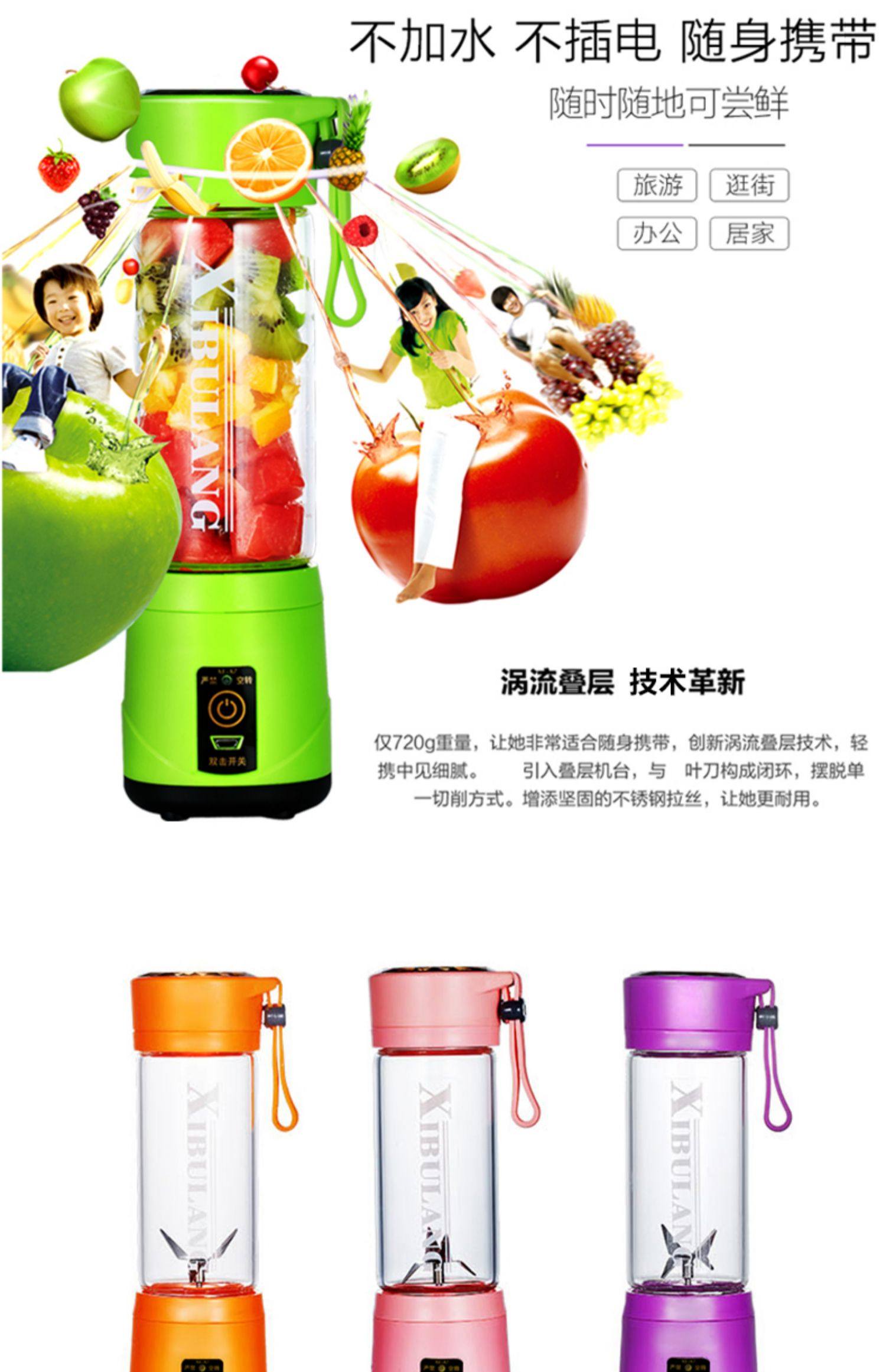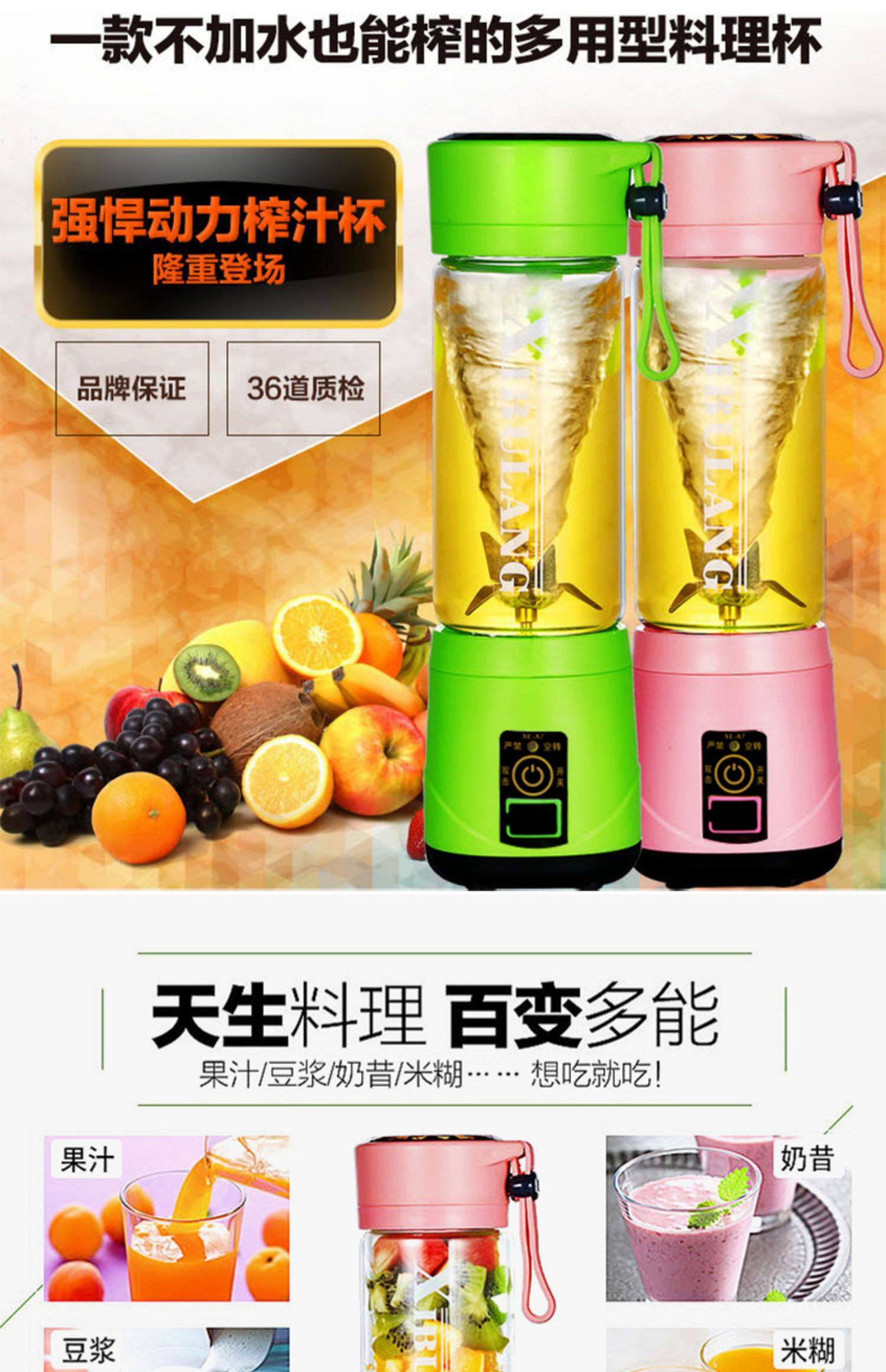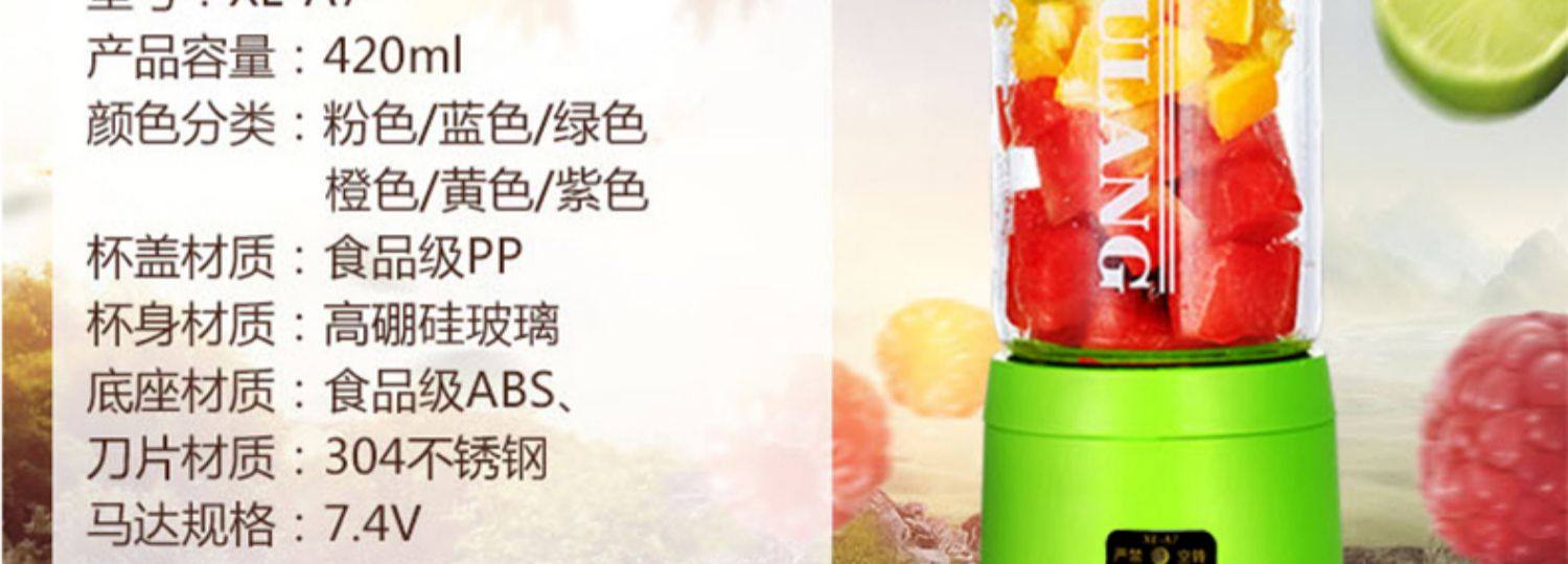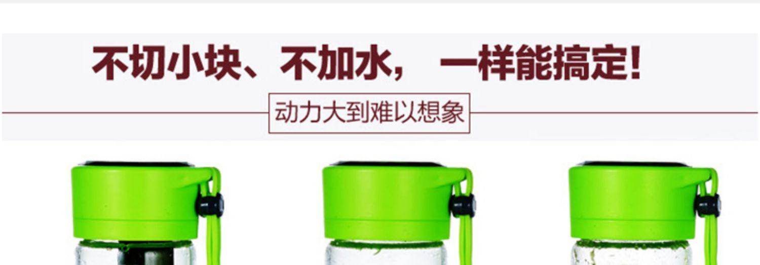 支持验货、7.4V大功率,便携冲电款,玻璃杯体,携带方便,可以不需要加水直接榨汁,随时随地想榨就榨,可以做榨果汁、制作奶昔,做宝宝辅食,多款颜色可选,五年包换,终身质保、送运费险