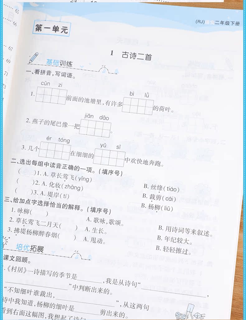 二年级下册语文+数学课课练,贴合人教课本,同步训练,巩固知识,内容丰富有趣,让孩子在娱乐中学习。