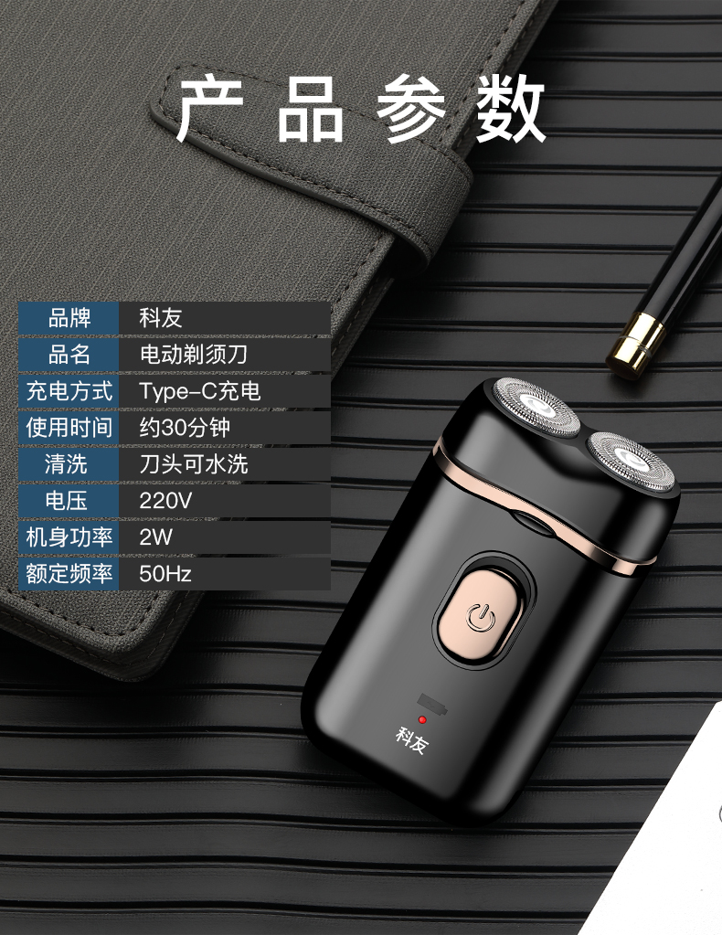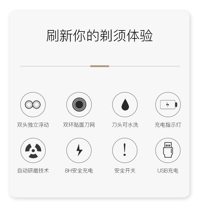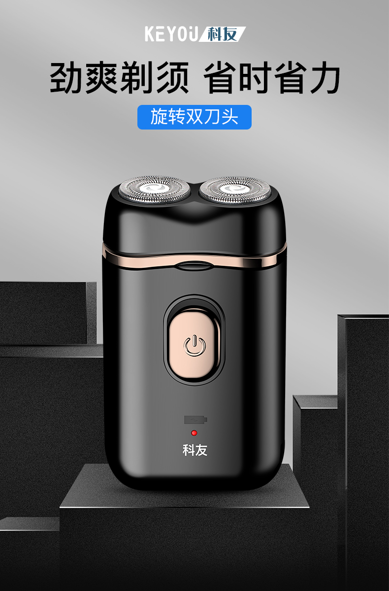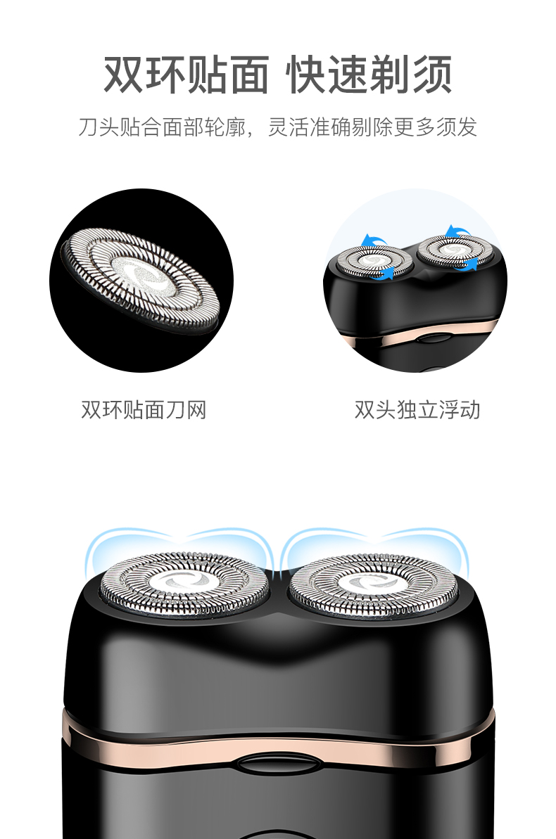 【充电式】双头独立浮动,双环贴面刀网,搭配自动研磨技术!快速剃须,久保锋利,刷新你的剃须新体验~刀头可水洗,更干净!洁净面容,让笑容更自信!【赠运费险】