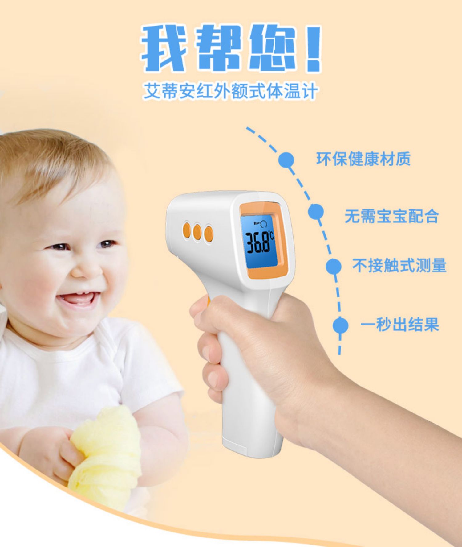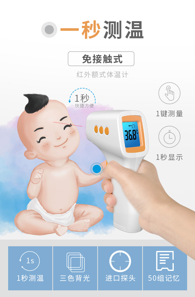 【赠运费险】医用级电子温度体温计!进口探头,一键准确测量体温,无需宝宝配合,只要距离额头1-3cm,扣动扳机即可~有ta,宝宝的健康状况早知道!只要29!宝妈们快囤~